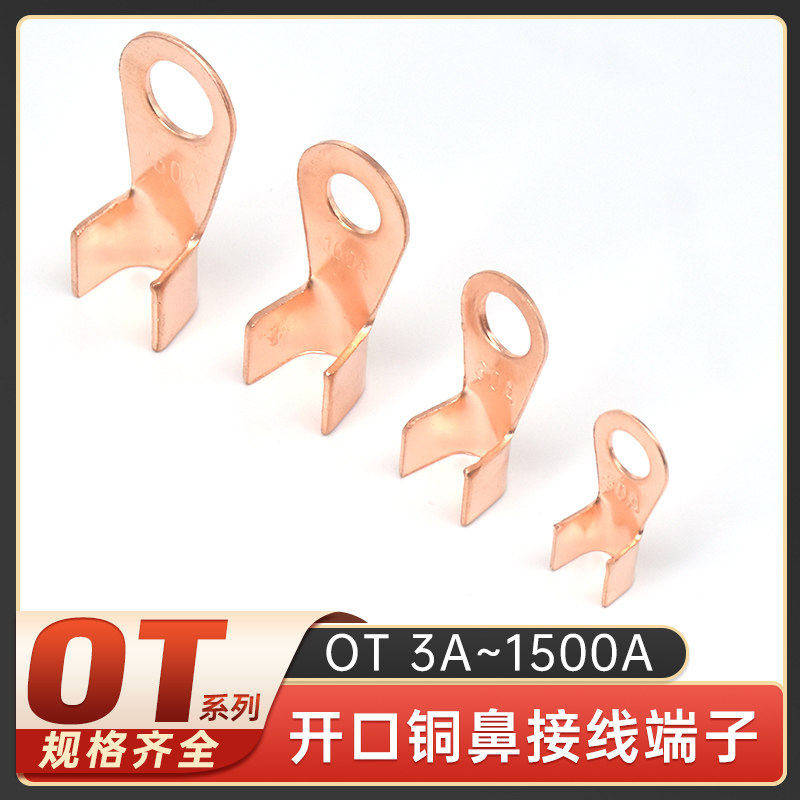 OT紫铜开口鼻铜鼻子接线端子线鼻子电瓶线耳接头3A16A30A100A800A