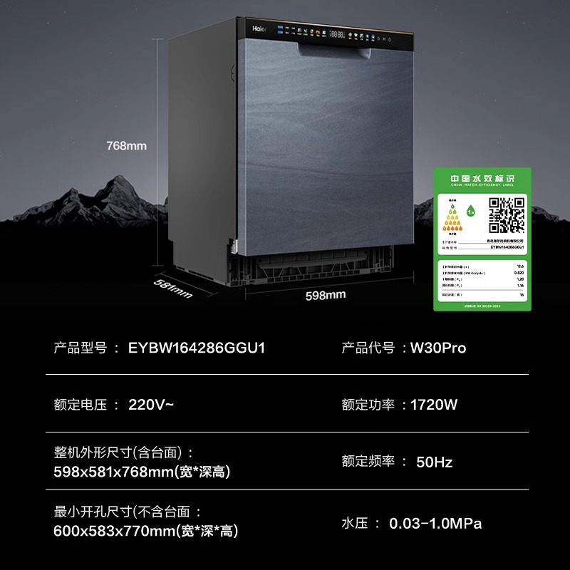 [大魔王]新品海尔洗碗机W30PRO全自动家用变频16套大容量嵌入式