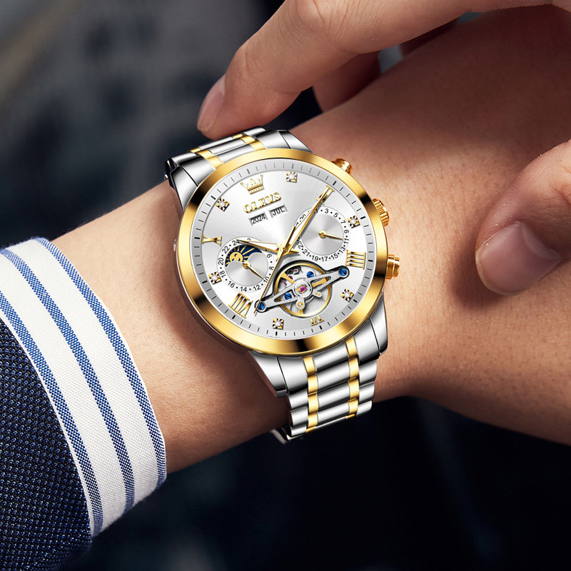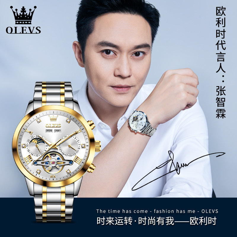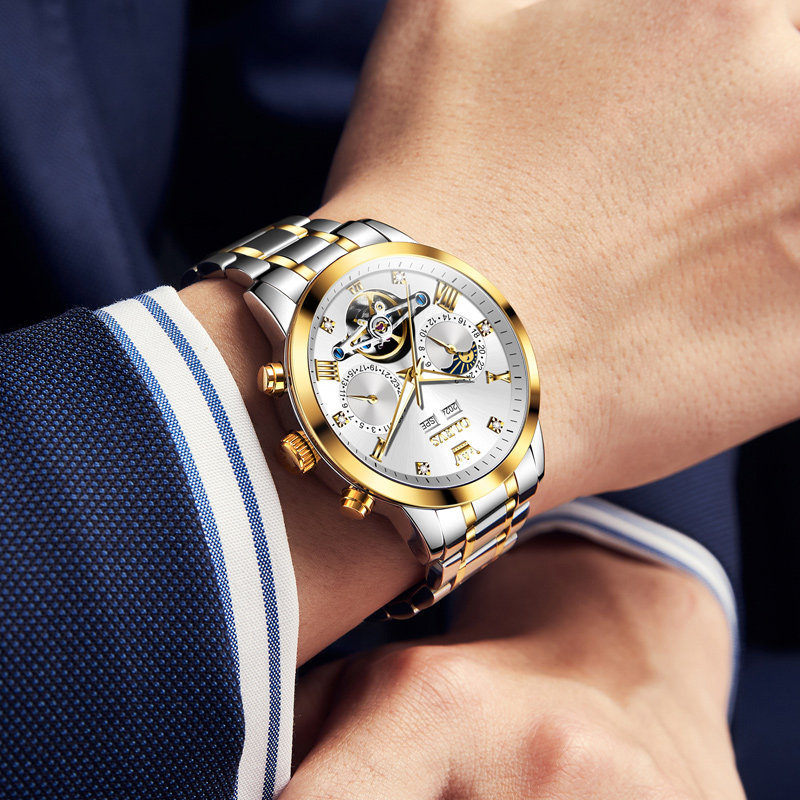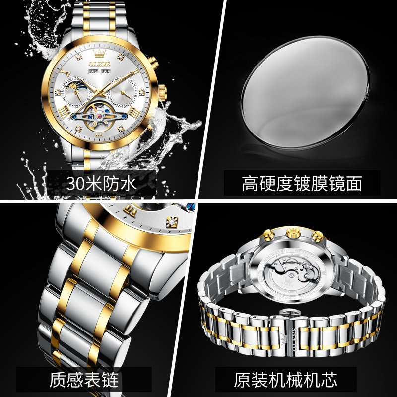 瑞士认证品牌新款商务男表自动机械表镂空陀飞轮设计钢带男款十大