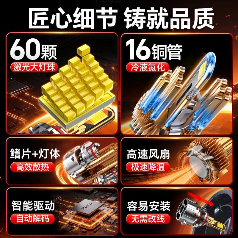 适用哈弗led大灯h6哈佛h2s远光h3近光m6一体h5国潮版Coupe灯泡h1