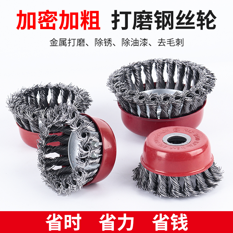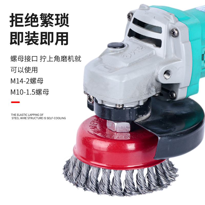 钢丝刷钢丝轮打磨除锈抛光角磨机碗型100M10型125M14手砂轮纽丝纶