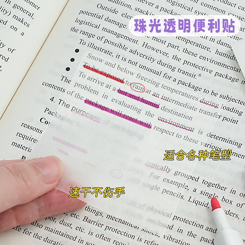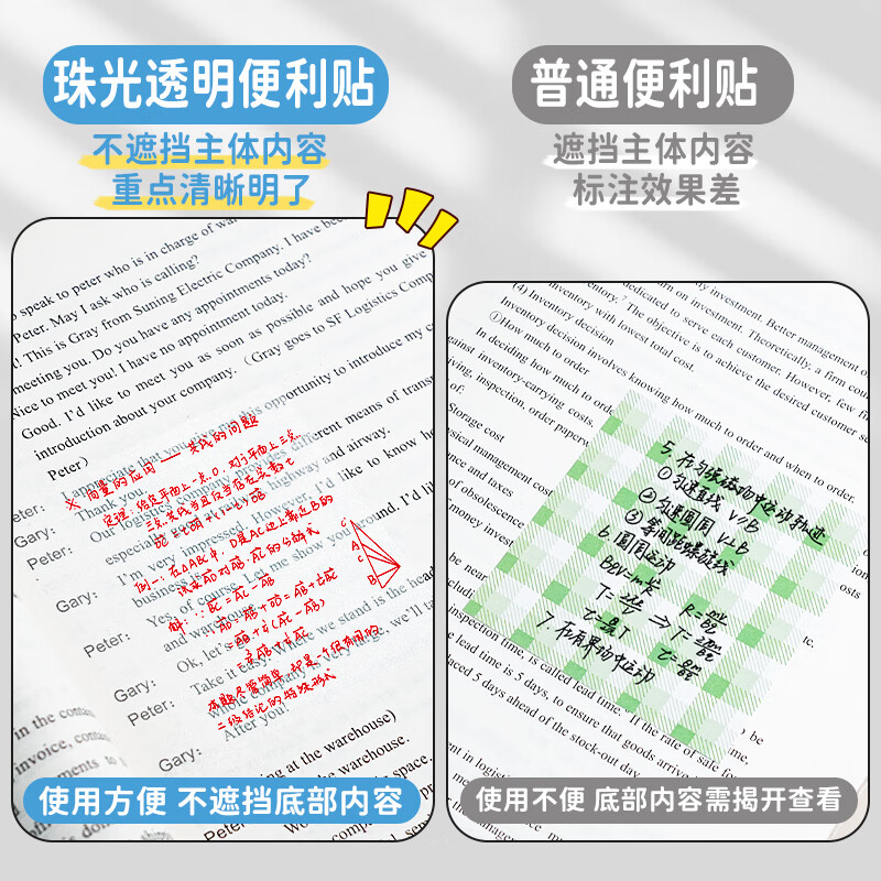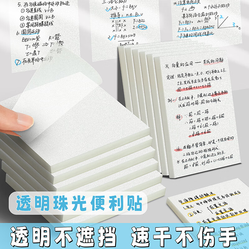 透明磨砂便利贴高颜值简约珠光便签纸学生用便签本考研重点标记做笔记初中生专用防水粘性速干可撕n次贴记事