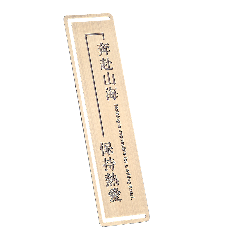浪漫八字书签 奔赴山海你若盛开心朗如月心中有尺以梦为马有生之年黄铜薄书签高档定制刻字支持定做校徽