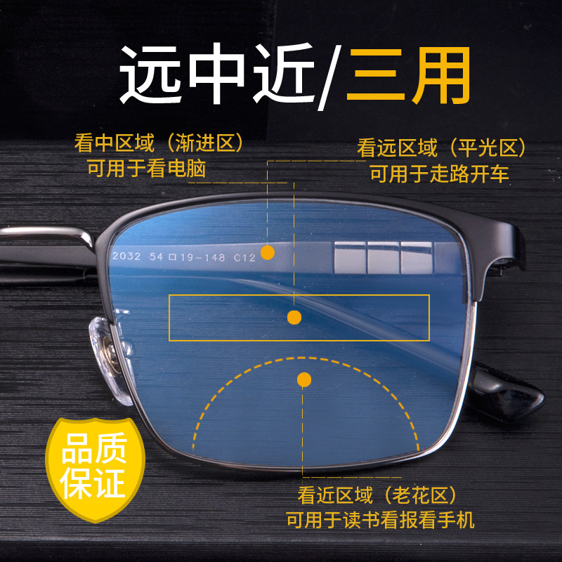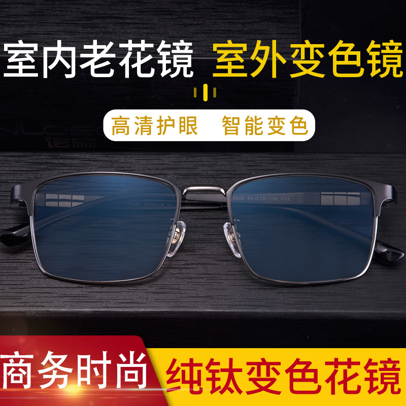 高端变色老花眼镜男智能远中近三用老年防蓝光高清老光镜