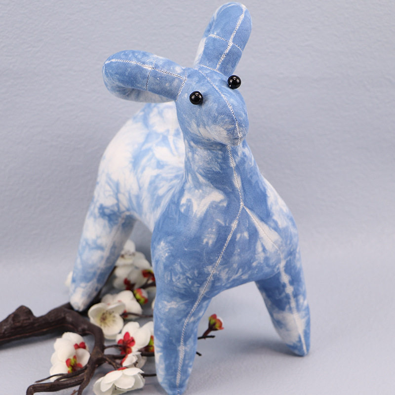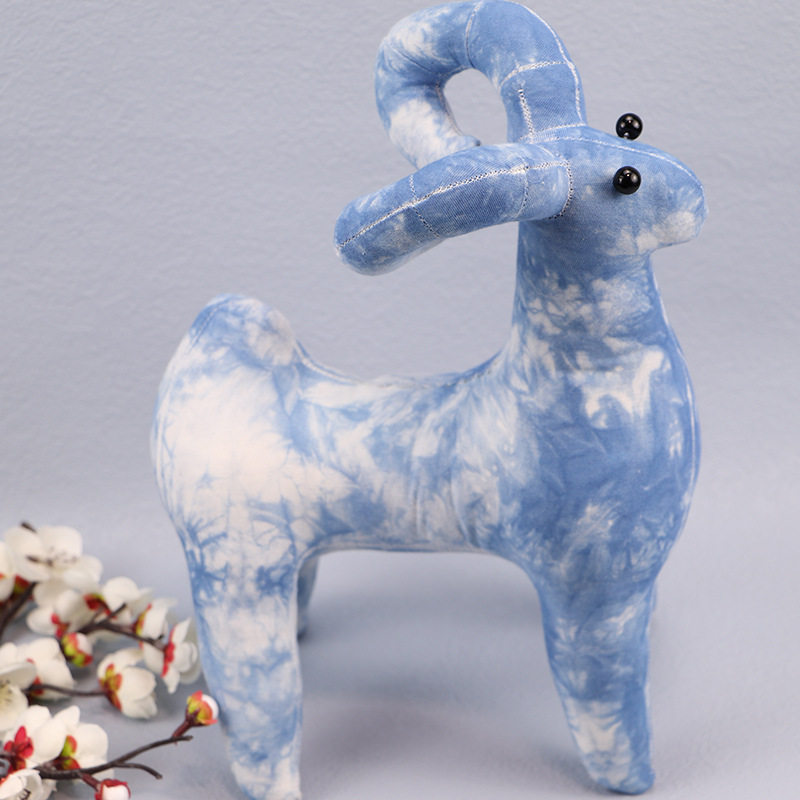 云南大理白族手工扎染羊蓝白动物摆件玩偶布艺扎染玩具伴手礼