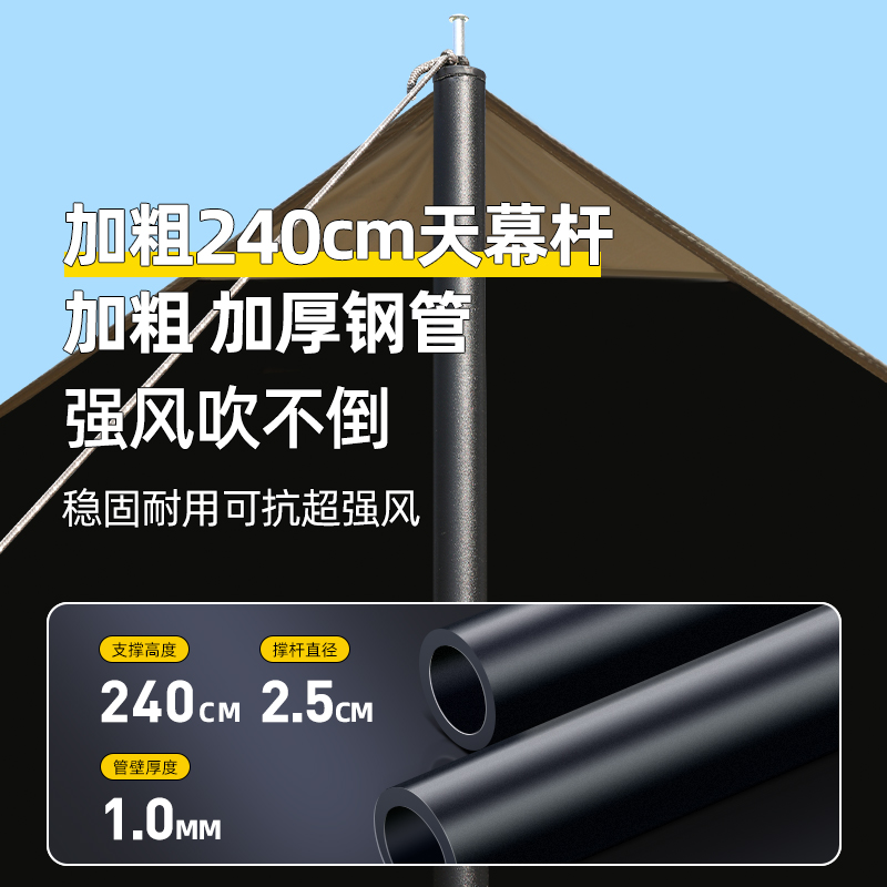 专业户外黑胶天幕帐篷露营野餐遮阳棚防晒隔热遮阳帘野营折叠桌椅