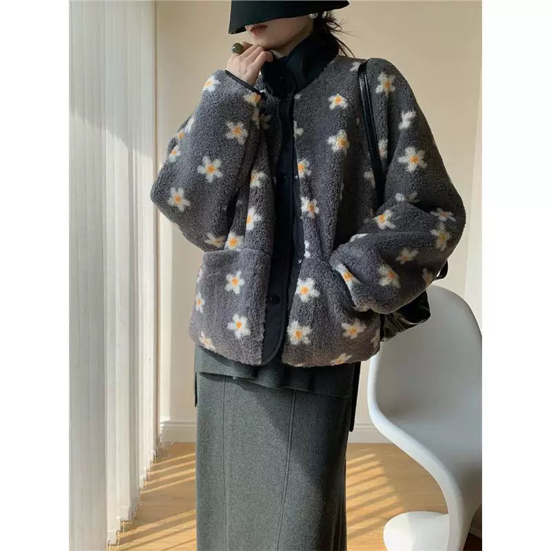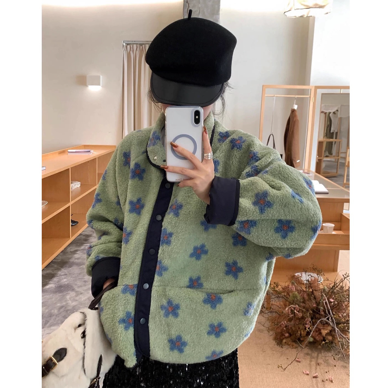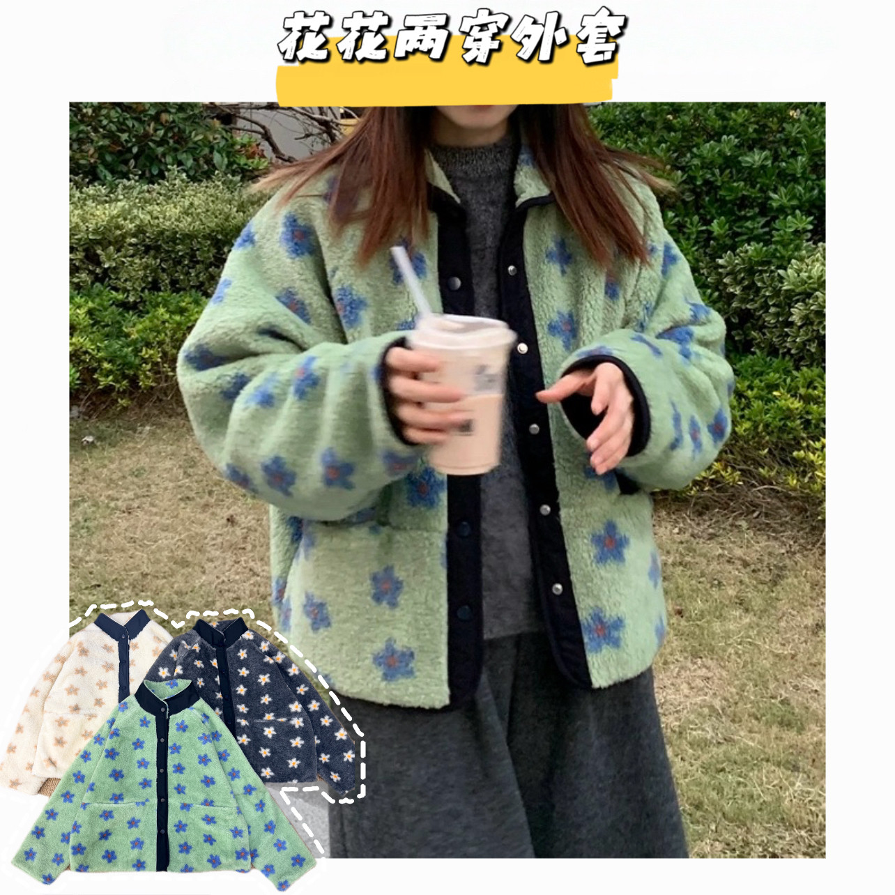 【花花两穿外套】韩风our羔羔毛正反两穿外套百搭显瘦长袖保暖外�