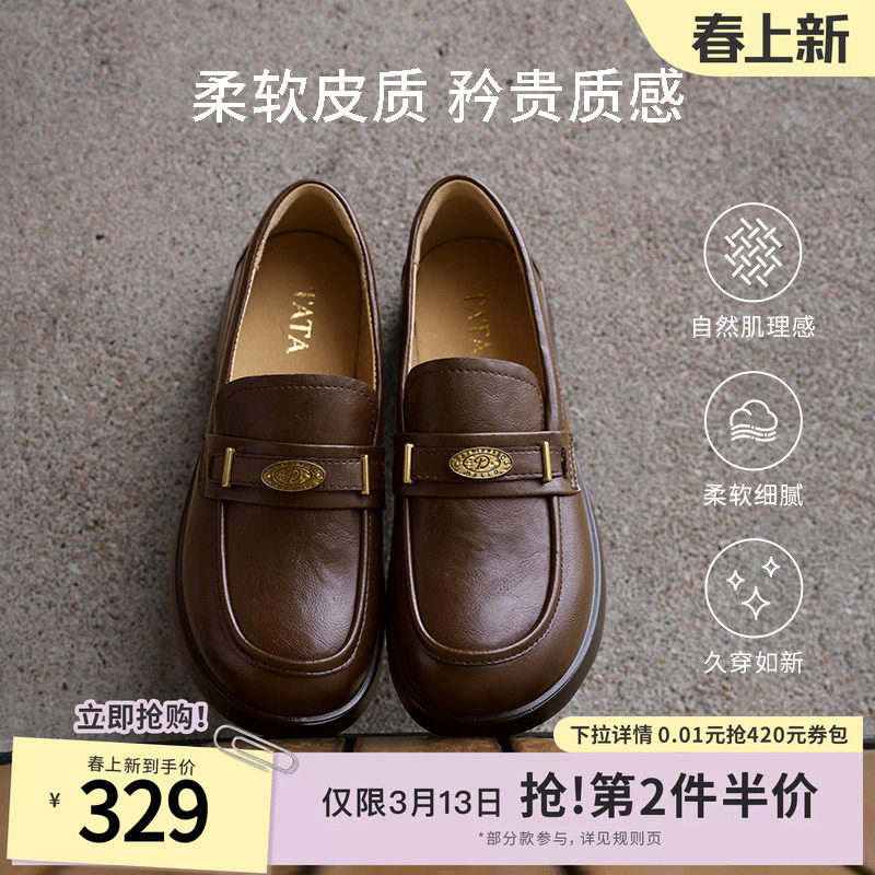 TATA他她六便士黑色乐福鞋女厚底小皮鞋真皮软底JK鞋女鞋ETV01CA5