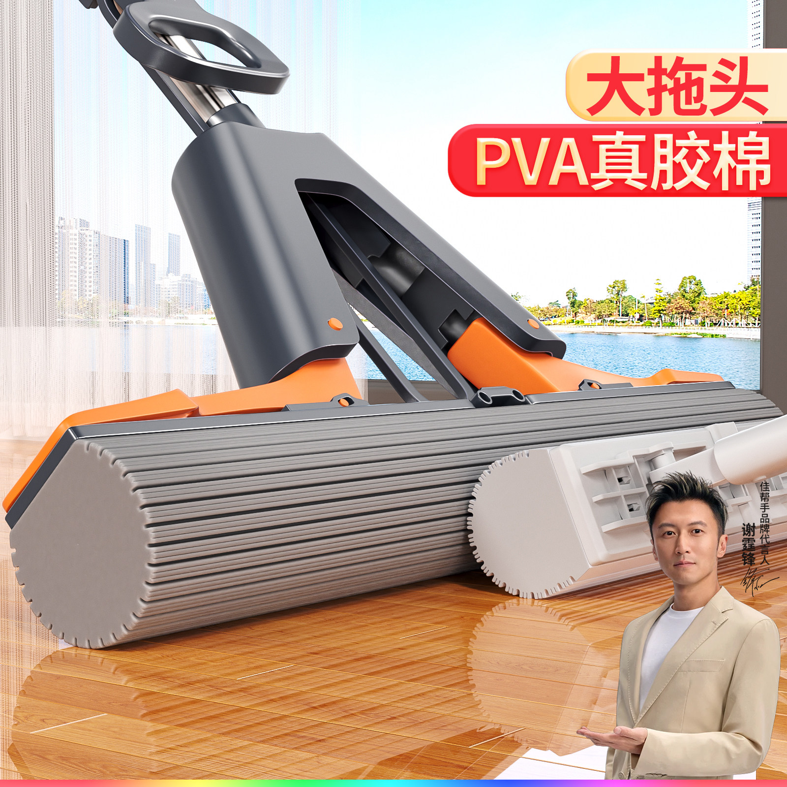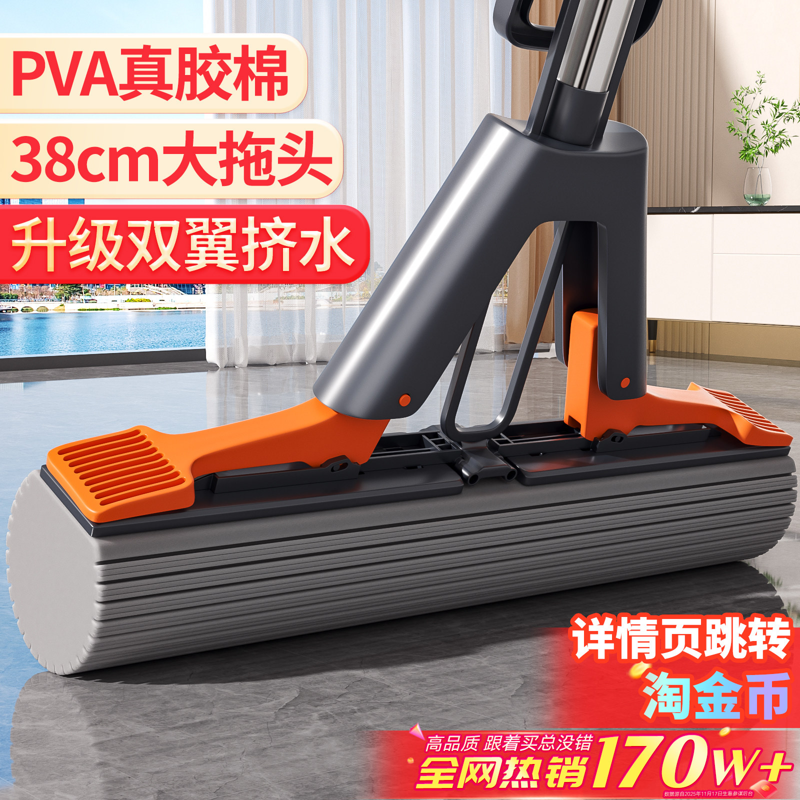 佳帮手大胶棉拖把2025新款家用一拖净干湿两用吸水免手洗对折海绵