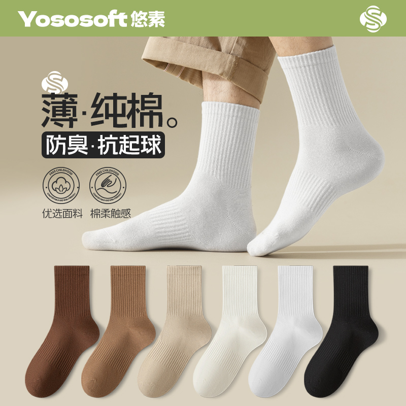 袜子男夏季薄款中筒袜吸汗防臭防脚气长筒袜春夏男生白色运动长袜