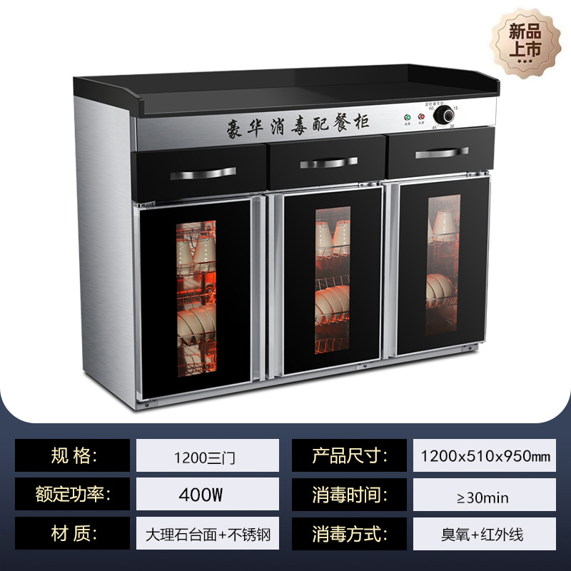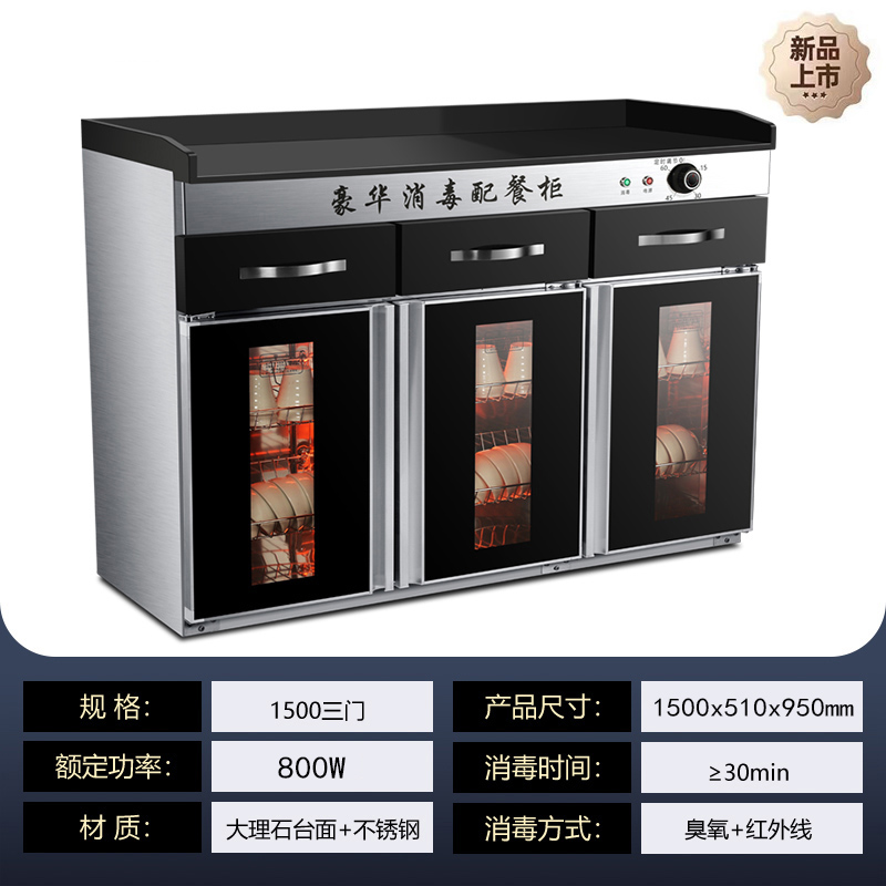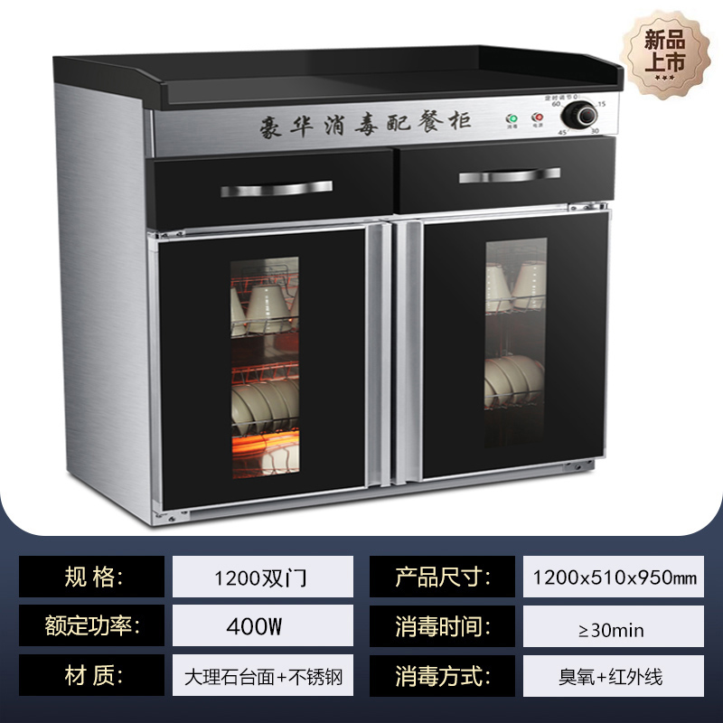 茶水消毒柜商用立式饭店厨房不锈钢大理石台面配餐具消毒碗柜