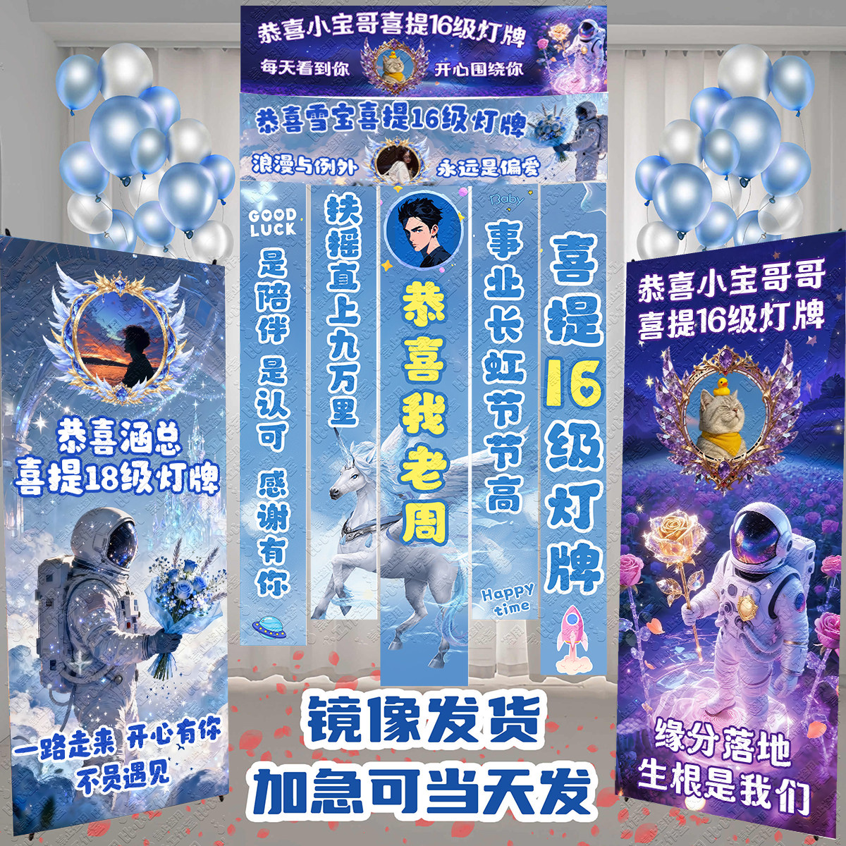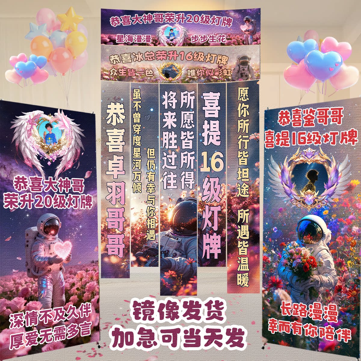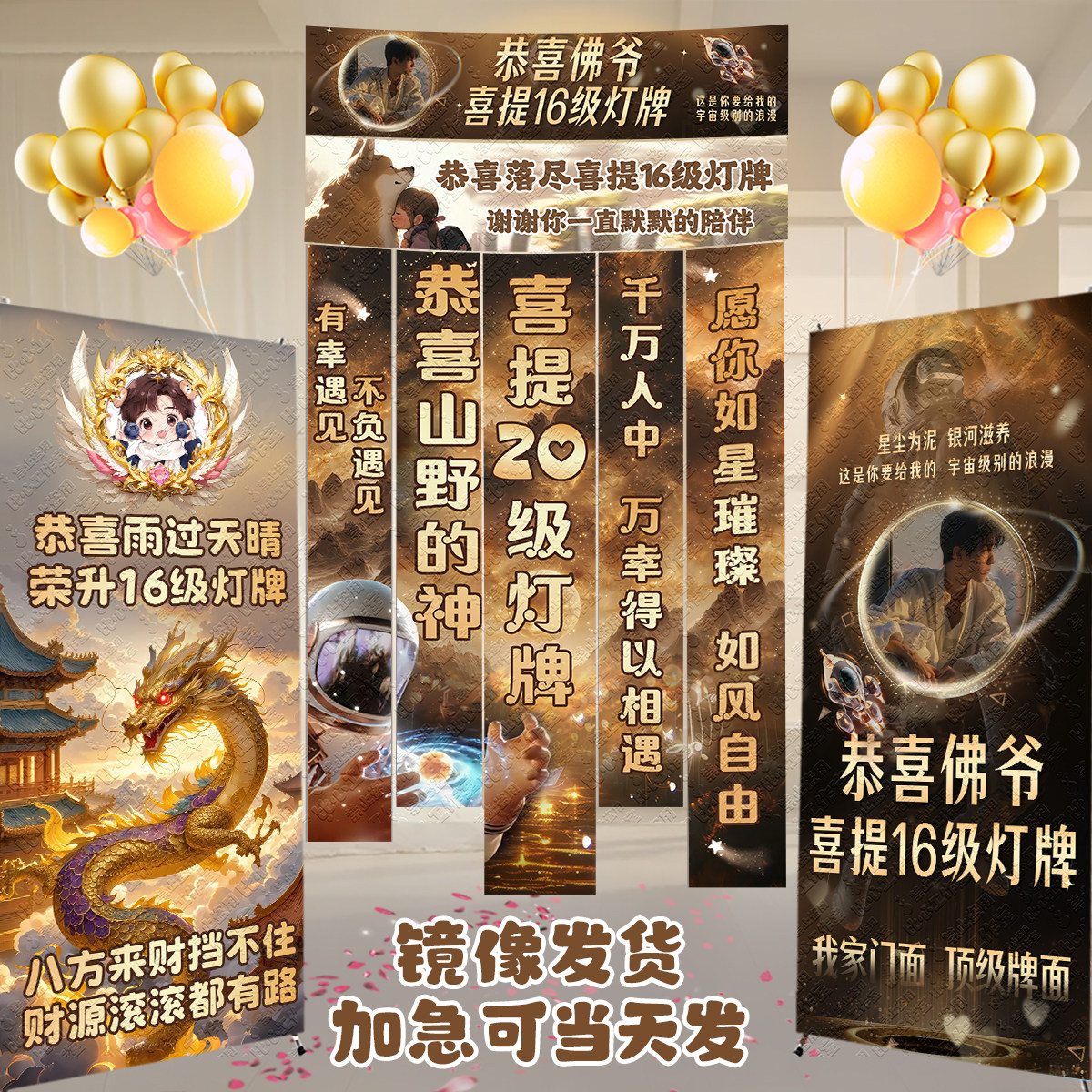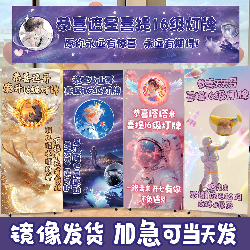 直播间横幅定制16级灯牌海报感谢大哥升级20级仪式布置立牌易拉宝
