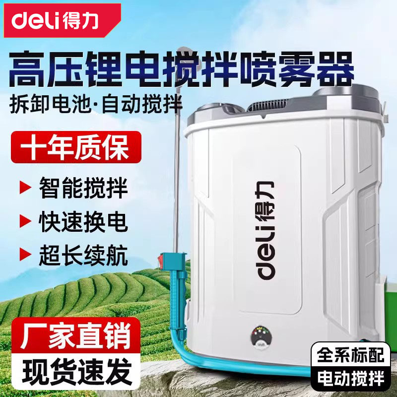 得力电动搅拌喷雾器农用打药机锂电池背负式新型喷洒充电农药喷壶