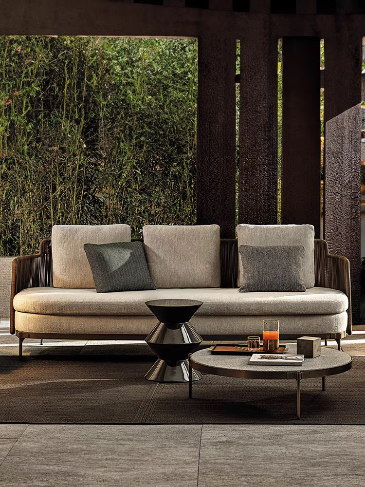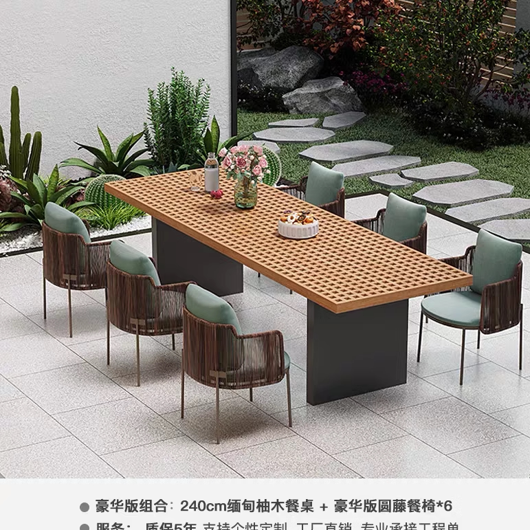 北欧户外花园休闲绳编沙发藤编沙发组合别墅客厅柚木家具长桌八椅