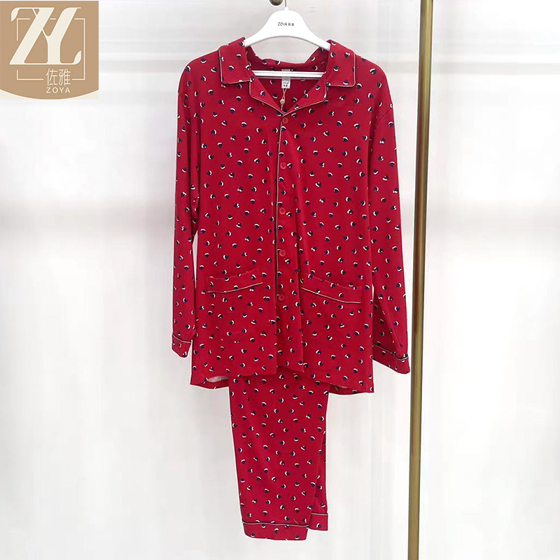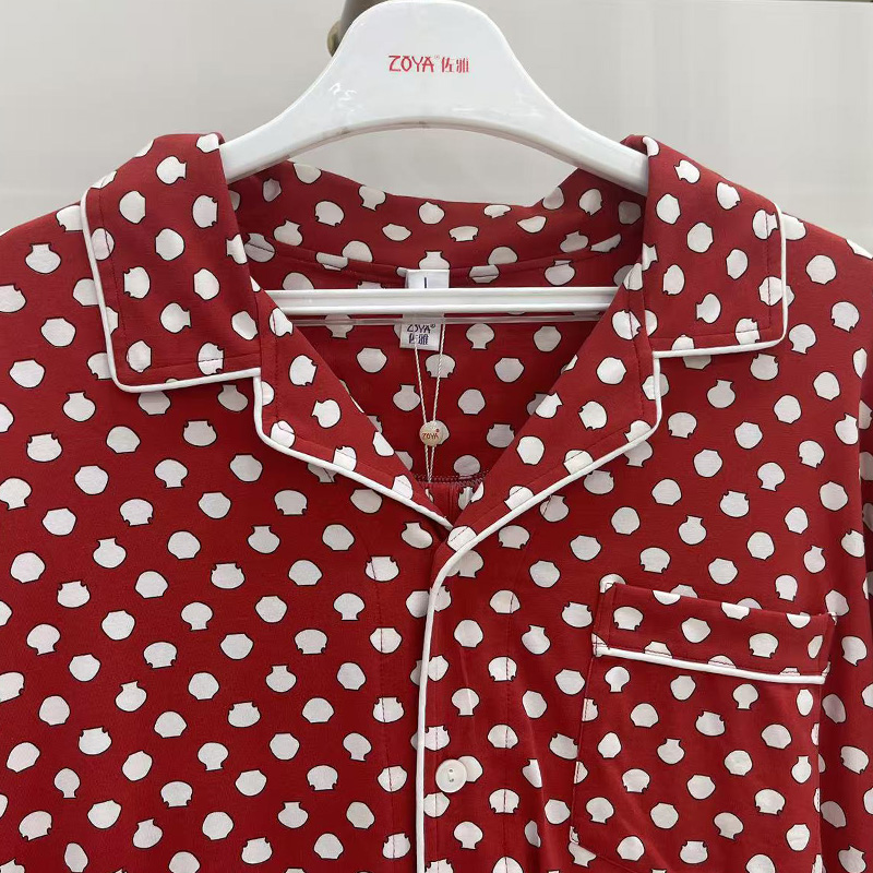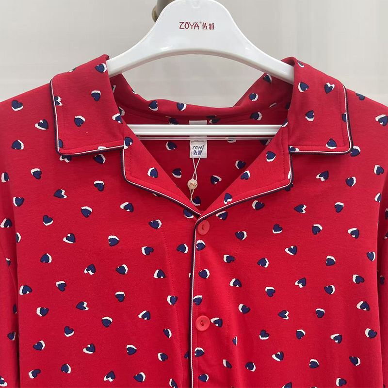 佐雅睡衣春秋女士纯棉长袖男士红色本命年家居服套装夏季睡裙