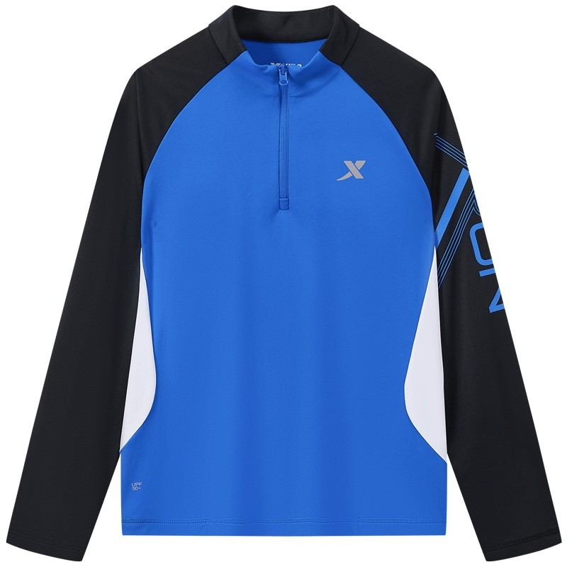 特步童装男童春装长袖T恤2026年新款儿童速干长t中大童半开襟上衣