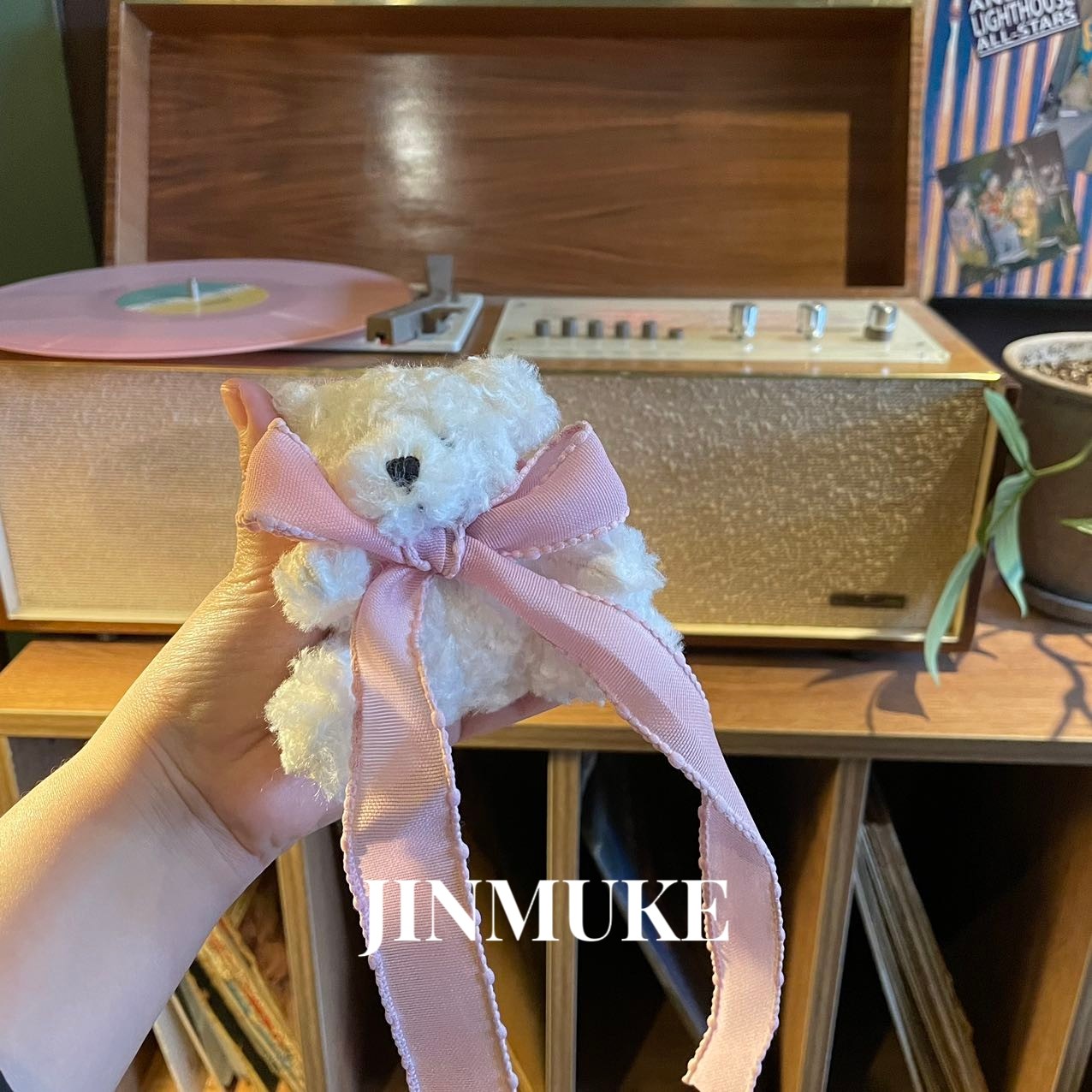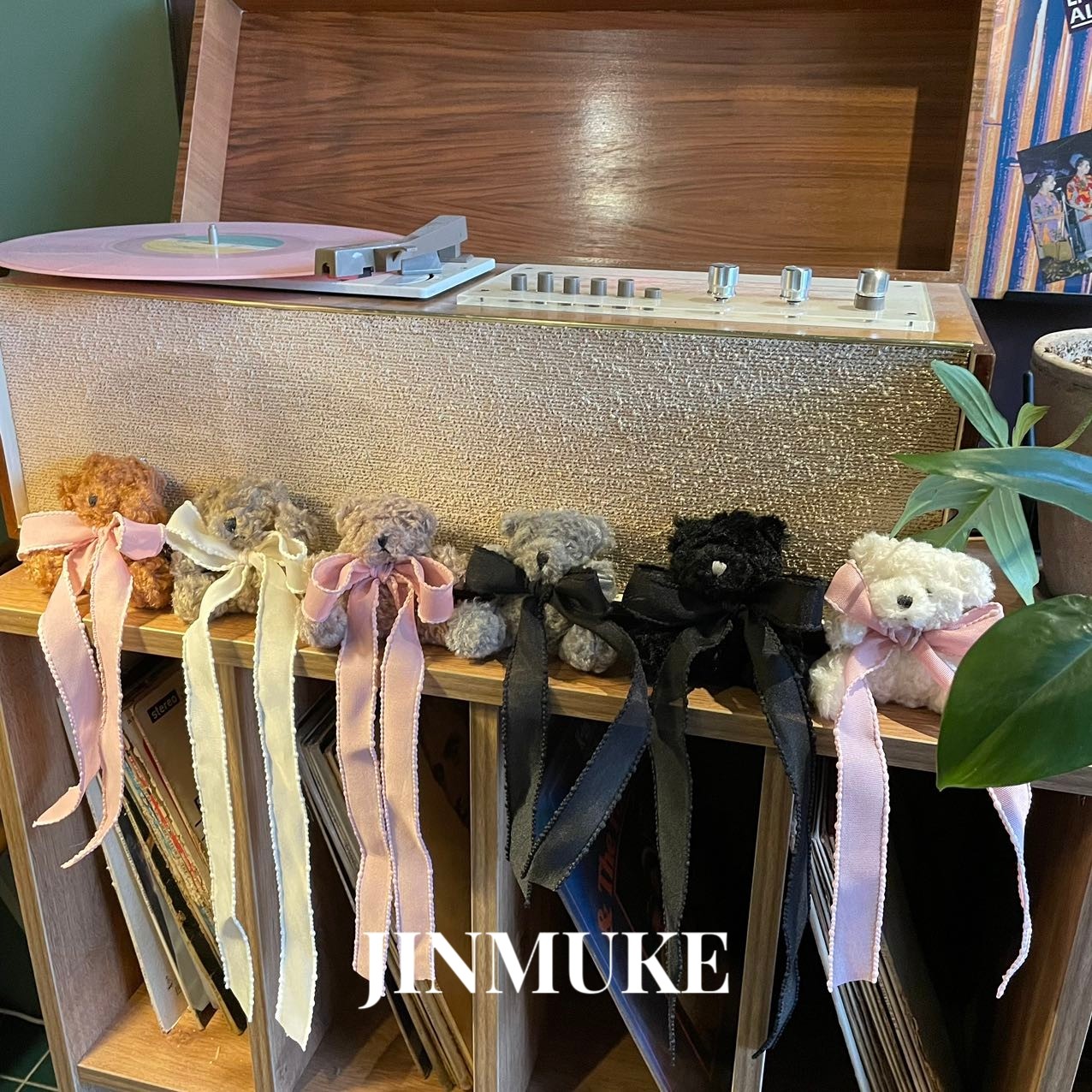 JINMUKE韩国进口时尚首饰新款毛绒蝴蝶结可爱小熊包包挂件钥匙扣