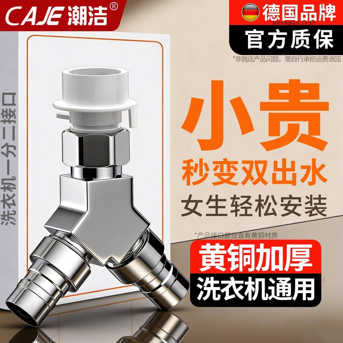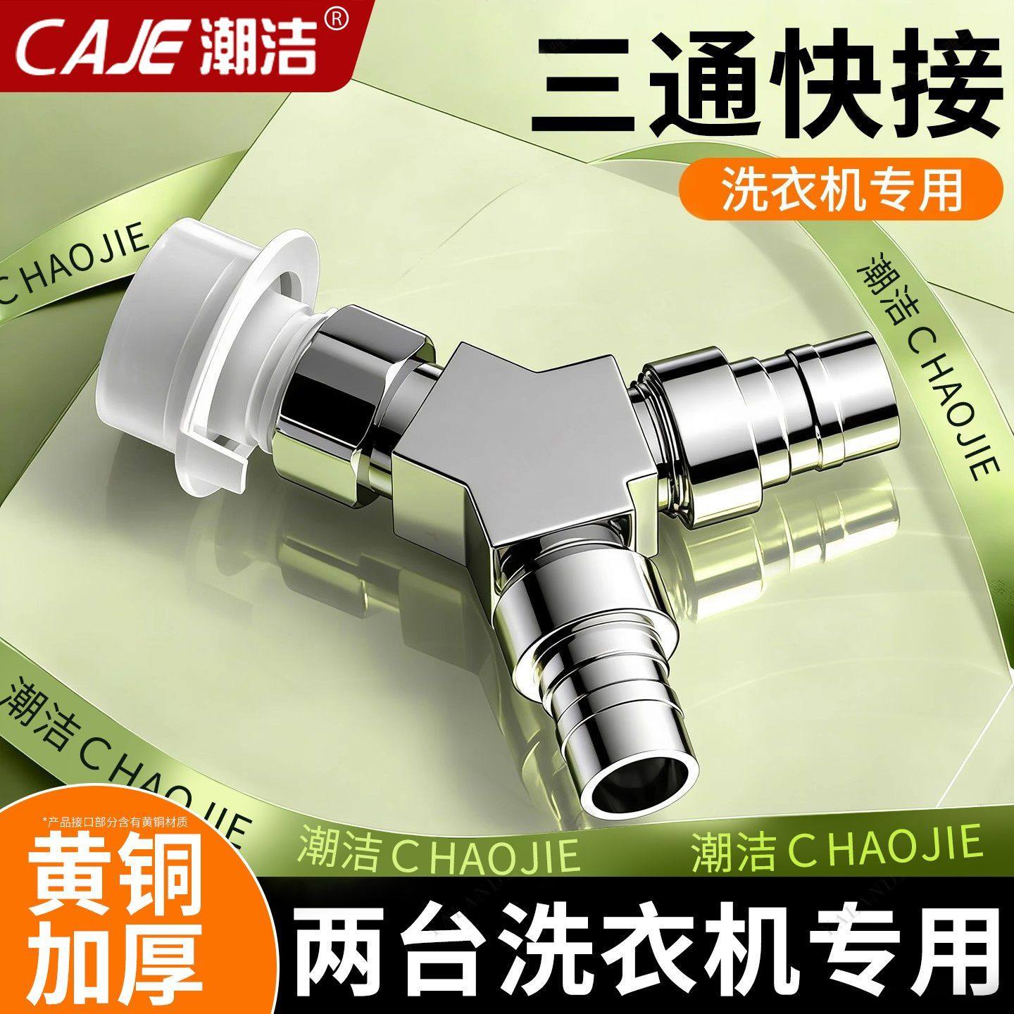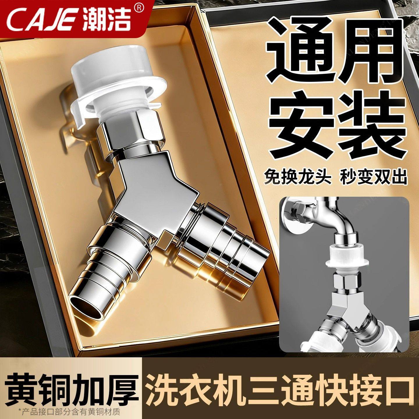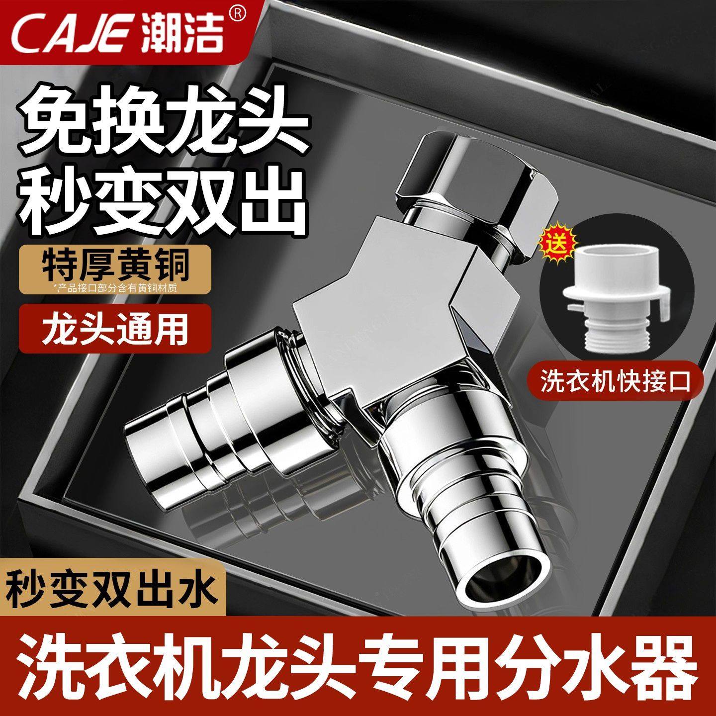 潮洁黄铜一进二出水龙头三通接头分流器洗衣机龙头专用分水神器