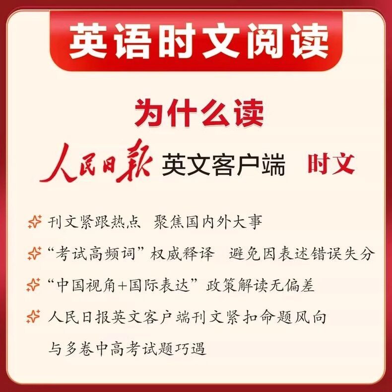 2026版人民日报英语时文阅读初中版高中版英语英语词汇语法句型阅读理解完形填空社会热点写作素材真题模拟国内外大事杂志期刊速递