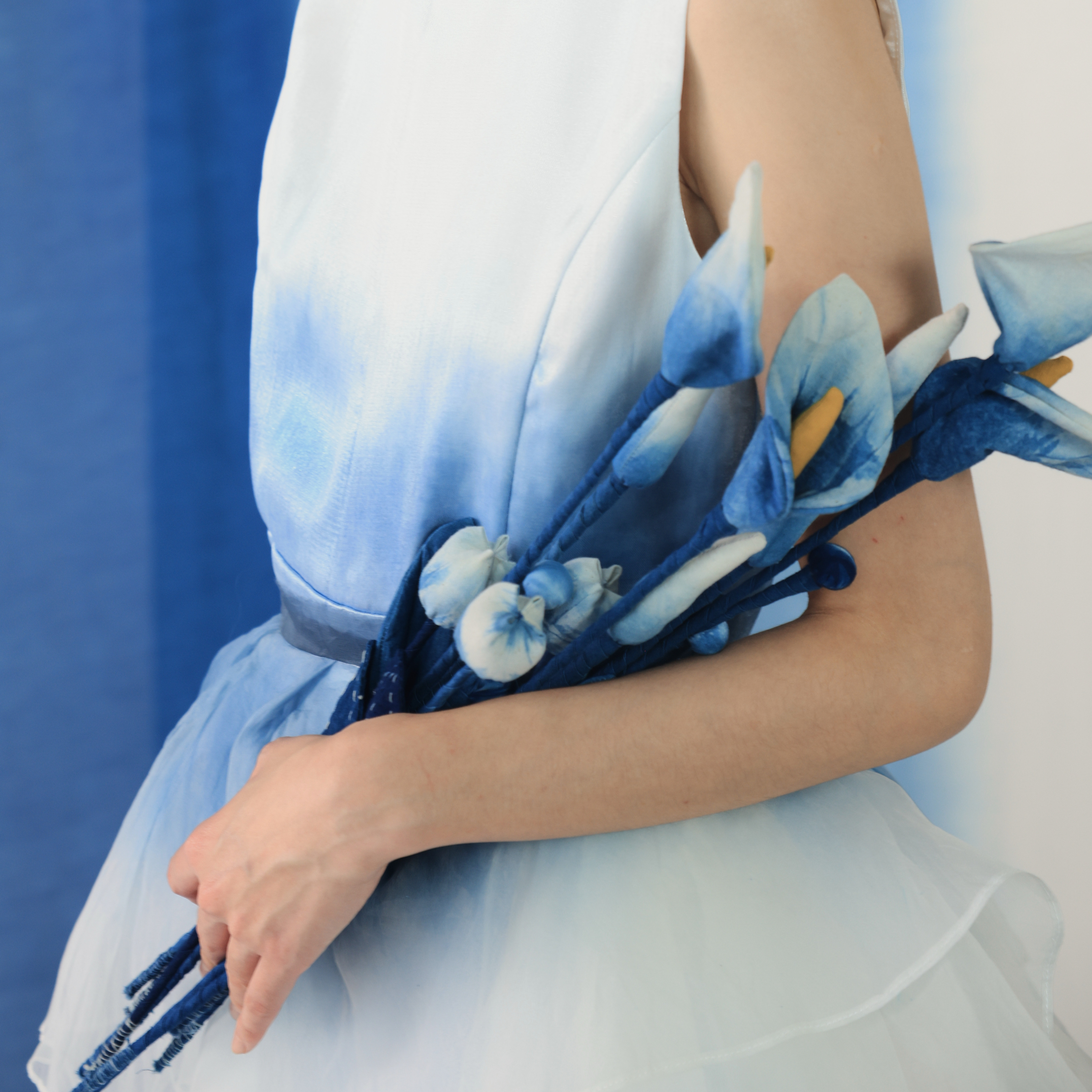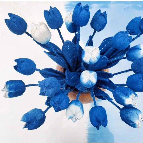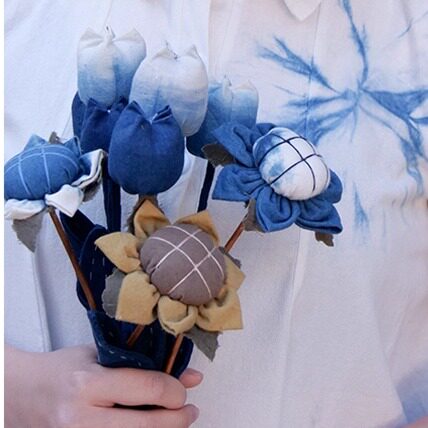 蓝续白族扎染装饰花布艺玉兰花扎染花束扎染花朵植物染布花小众