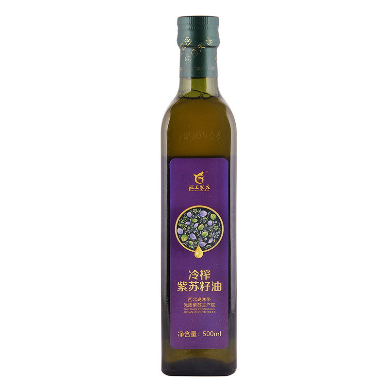 陇上农庄一级冷榨紫苏籽油500ml深色避光玻璃瓶高端食用油特惠