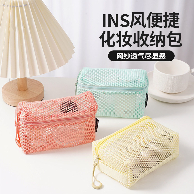 多巴胺立体网格化妆包女便携式网纱旅行洗漱包透明收纳袋整理杂物