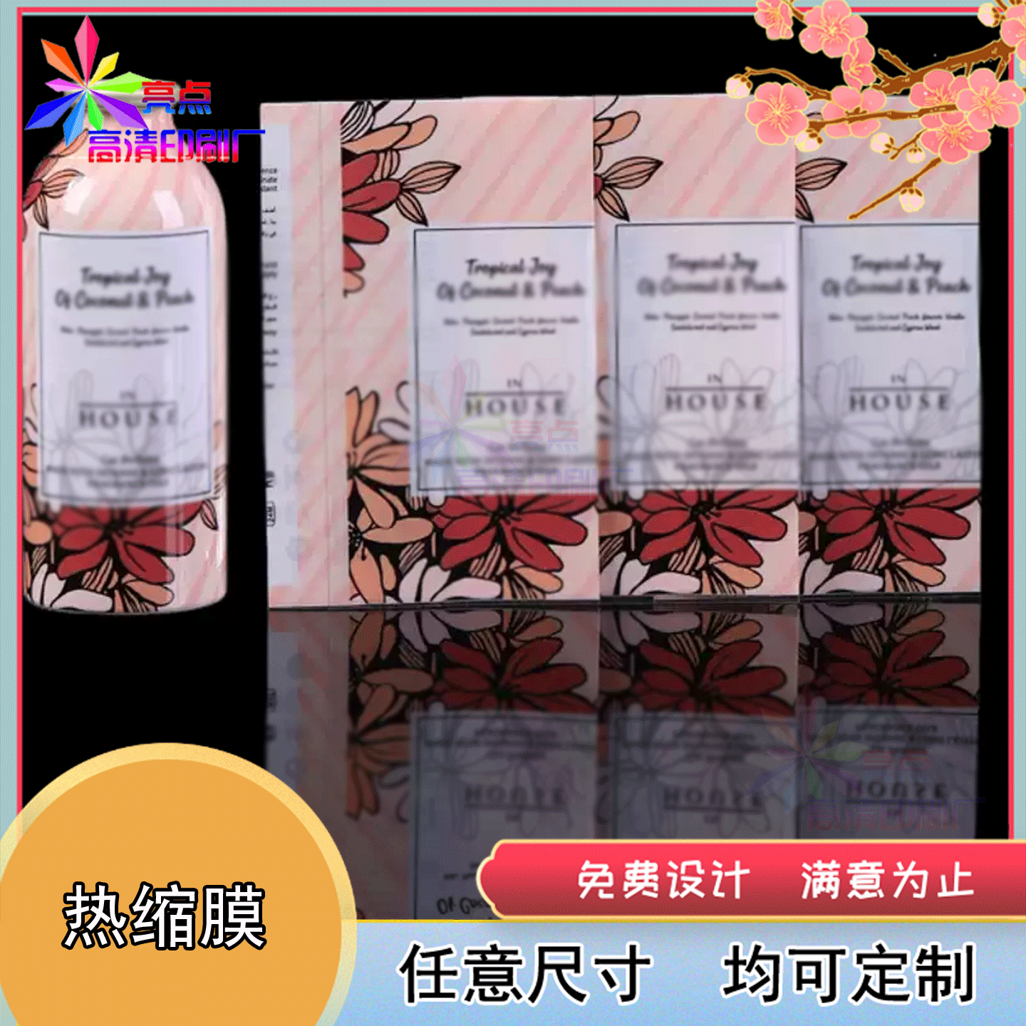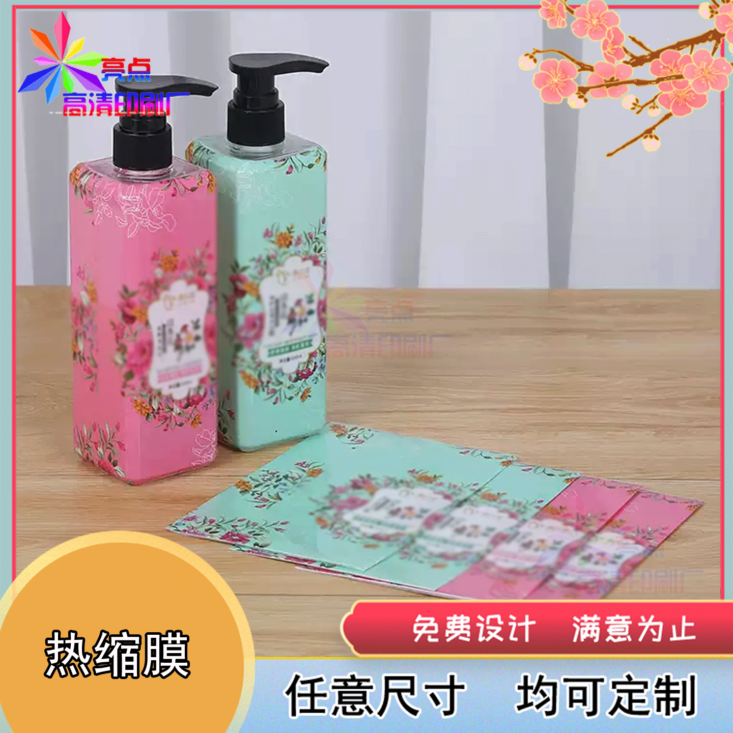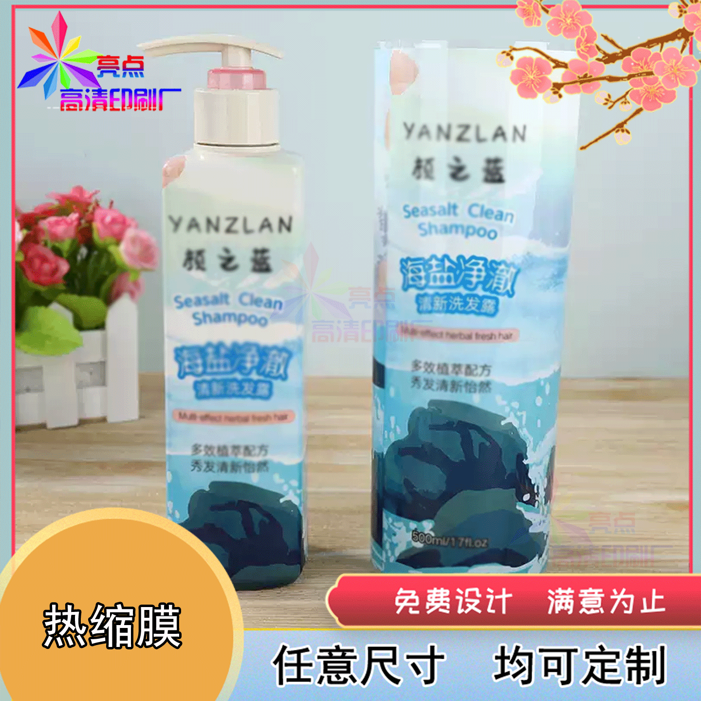 定制洗发水pet热缩膜套标啤酒罐珠光膜不干胶烫金标签设计印刷