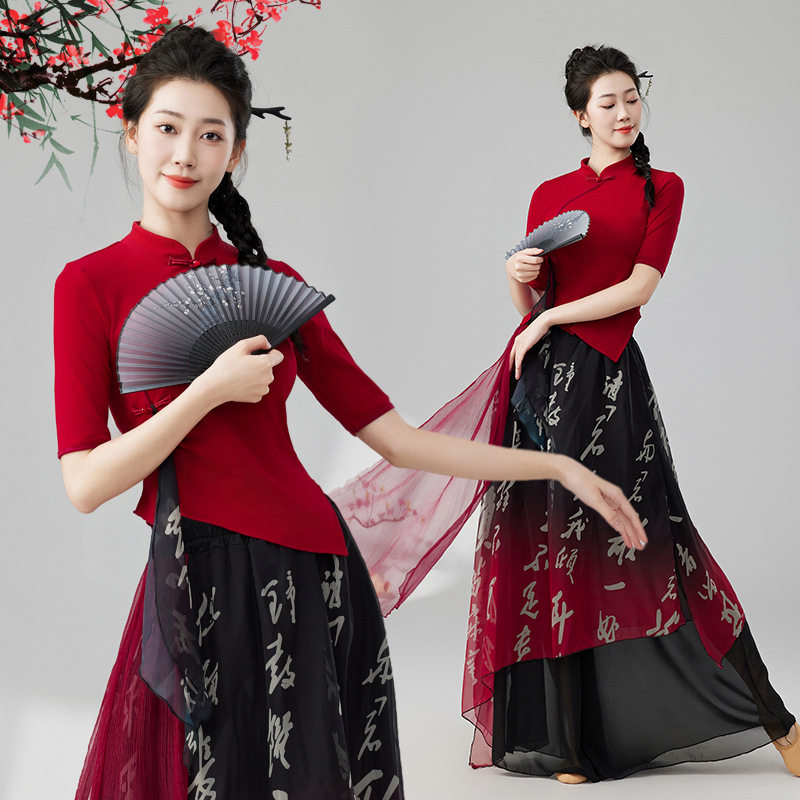 古典舞广场舞服装新款套装团体表演服健身练功民族中国风演出服女