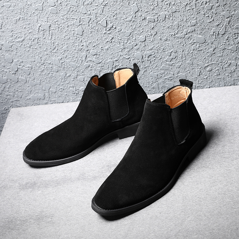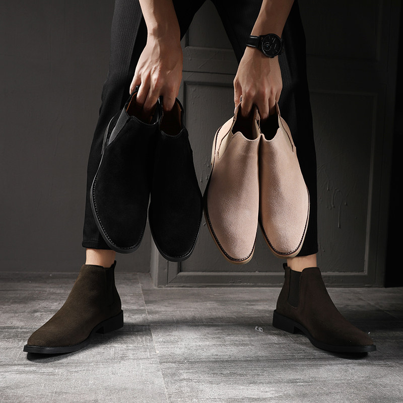 切尔西靴男真皮翻毛皮男鞋2026新款高帮百搭英伦磨砂休闲男士皮鞋