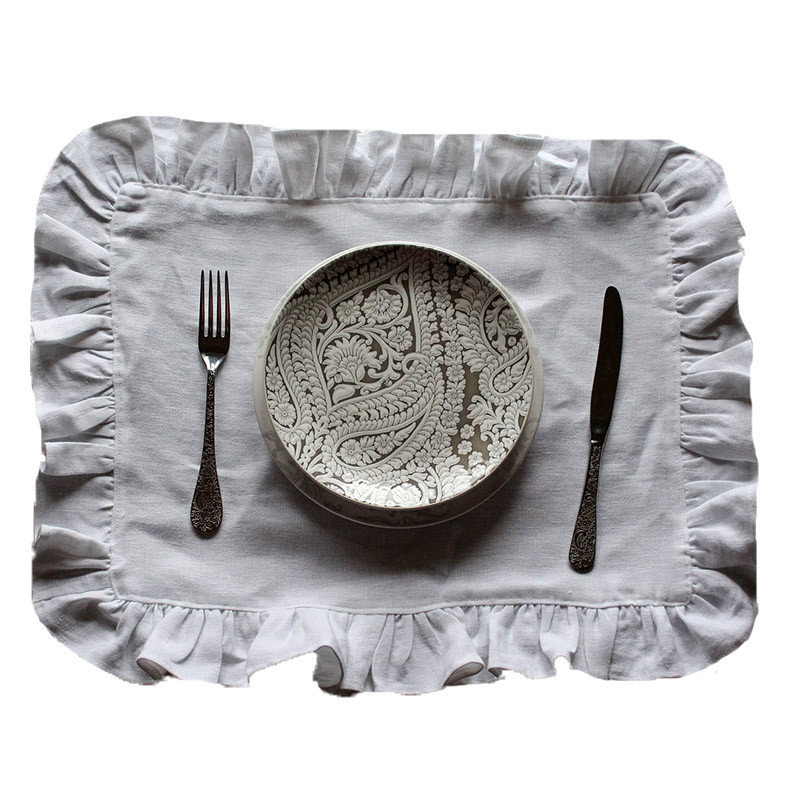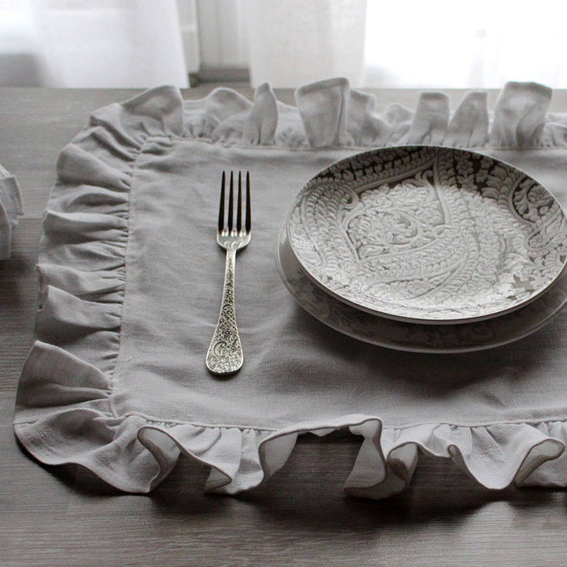 法国纯亚麻布艺西餐垫 水洗100%亚麻居家餐巾垫隔热餐厅桌垫花边