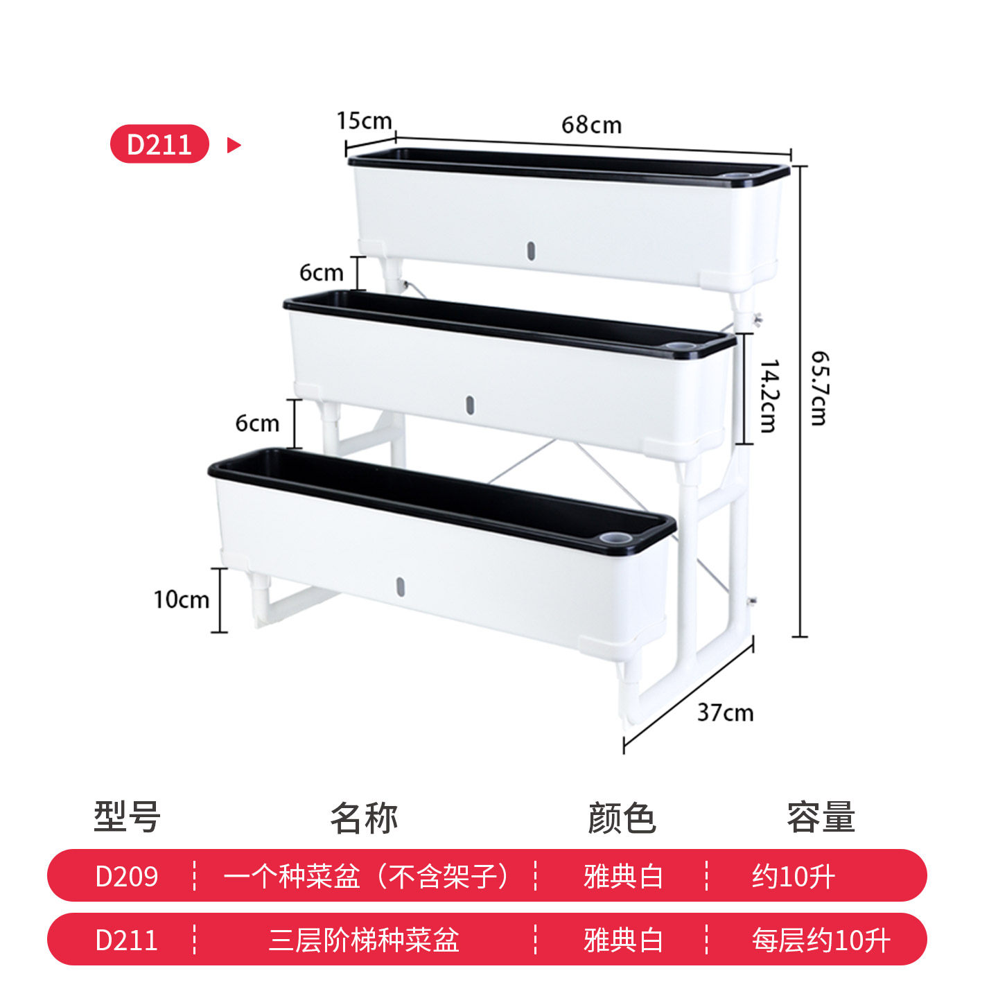 欧林泽多层花盆加厚材质窄边水土分离阳台种菜盆种草莓超轻易清洁
