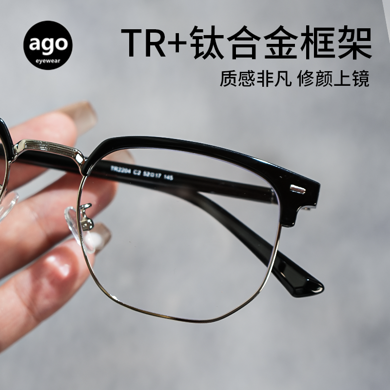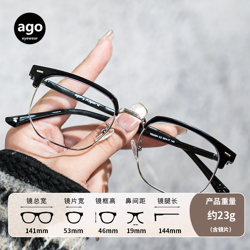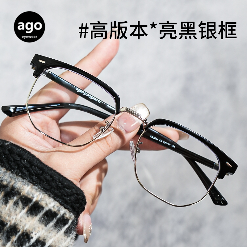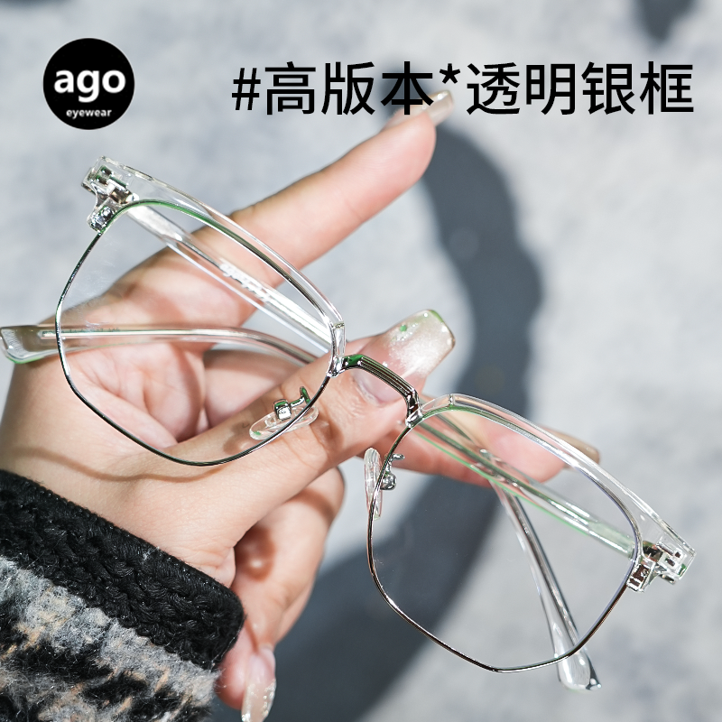 ago近视眼镜男女可配度数防蓝光防雾眉毛款半框眼镜时尚百搭平光
