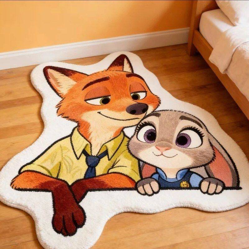 卡通地毯仿羊绒卧室床边隔凉防滑毛绒柔软客厅沙发疯狂动物城地垫