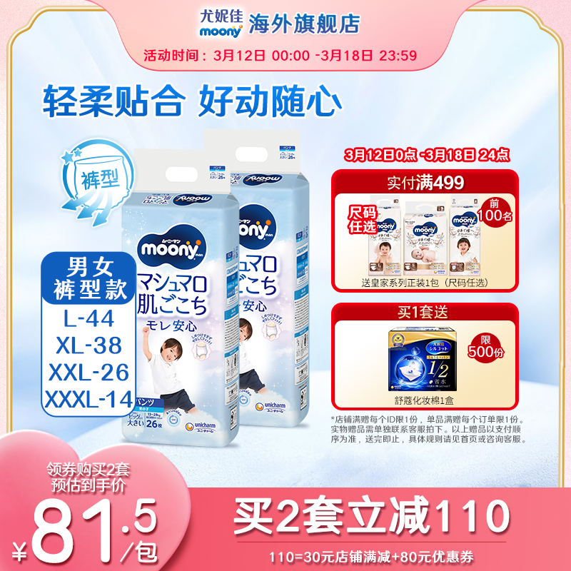 尤妮佳moony畅透男女宝宝拉拉裤透气婴童纸尿裤L/XL/XXL/XXXL2包