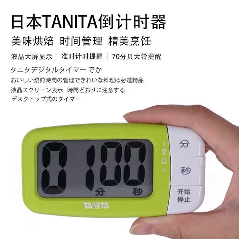 百利达Tanita计时器厨房定时器大屏显示大声提醒多功能闹钟