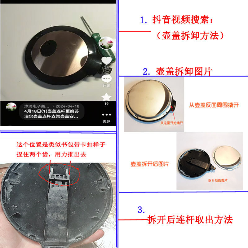 适配苏泊尔电热水壶15J69A开盖连杆支架17J419/17T12C/17J418壶盖