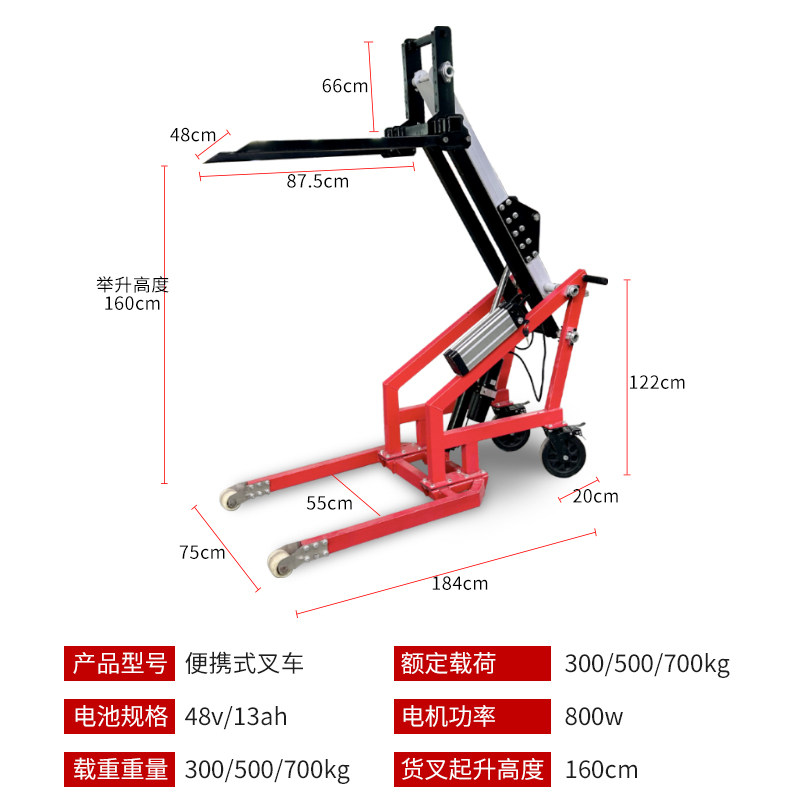 便捷式液压电动小型叉车全自动曲臂式物流仓储装卸货物堆高搬运车