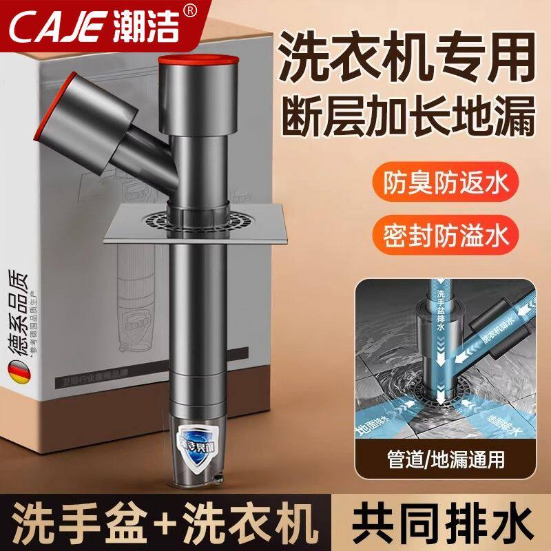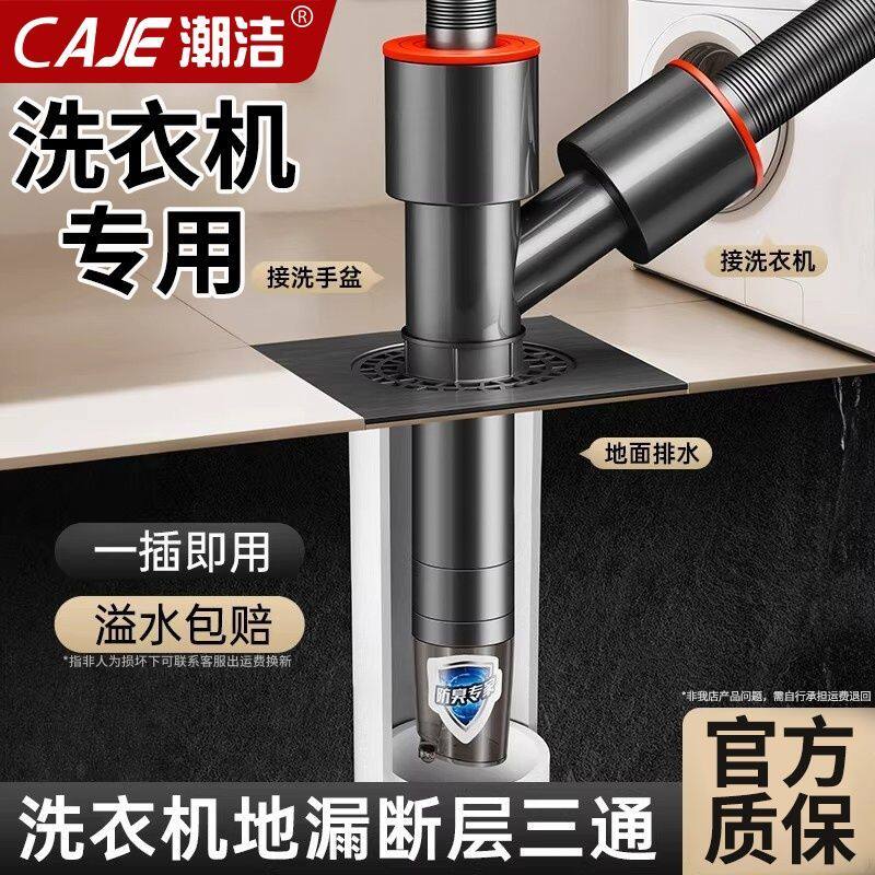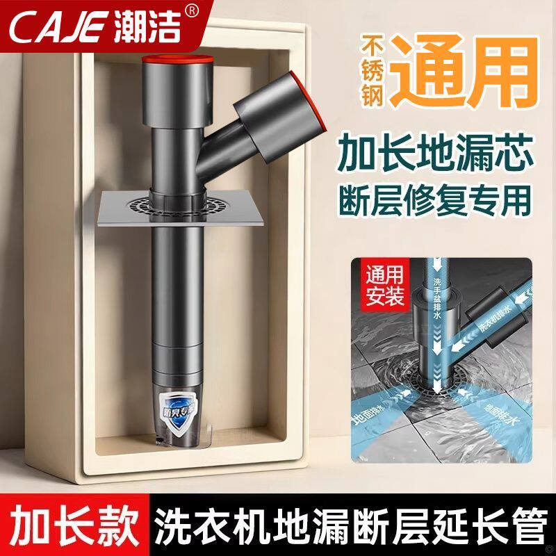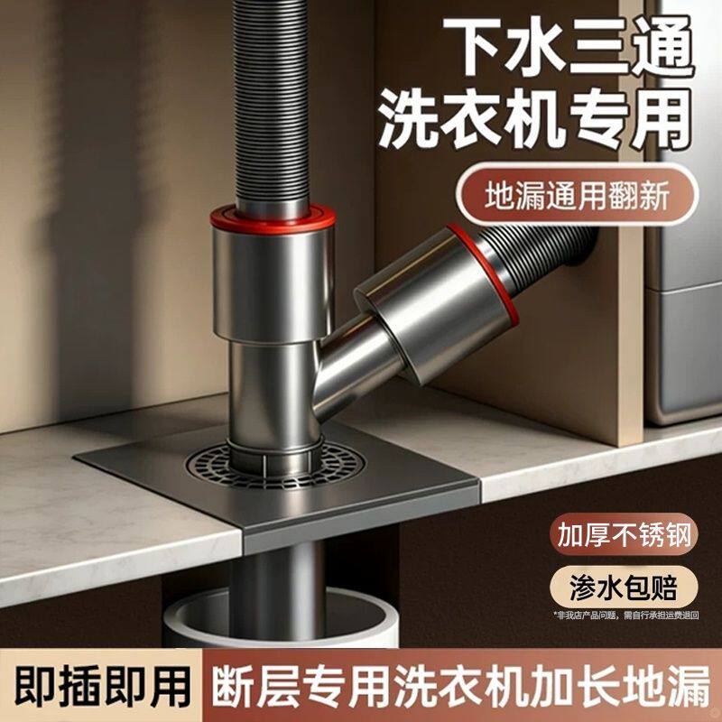 潮洁下水管道通用洗手盆洗衣机排水管加长地漏专用三通接头翻新器