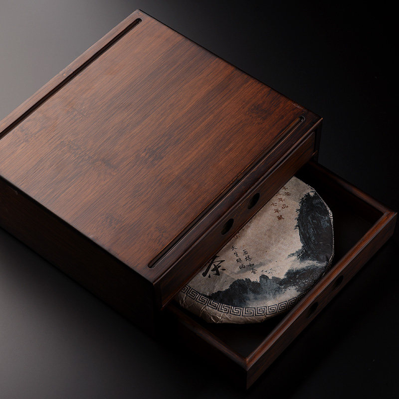 储茶竹制普洱茶盒 柜功夫茶具 茶刀分茶盘收纳开茶饼盒茶道零配件
