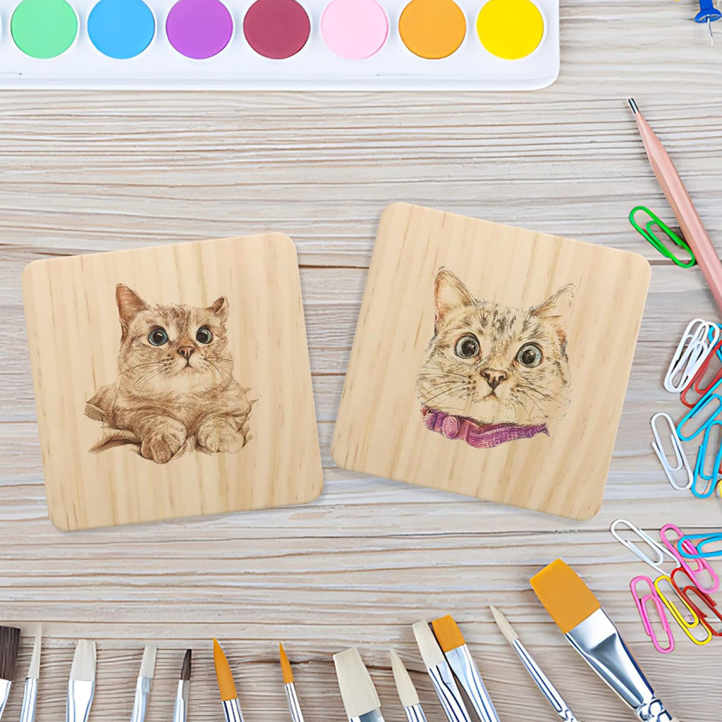 24件装diy杯垫带防滑泡棉垫贴木质染色绘画木雕家居装饰品茶杯垫
