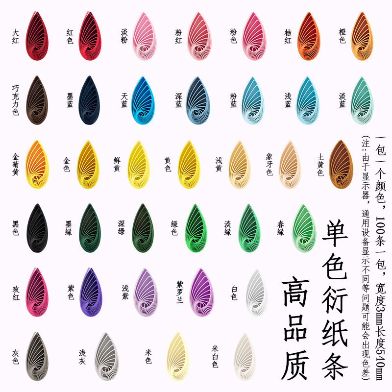 衍纸艺540mm长单色衍纸条套装3mm36色系彩色折纸3毫米衍纸条初学者手工diy材料包自制立体衍纸画线稿纸卷纸条