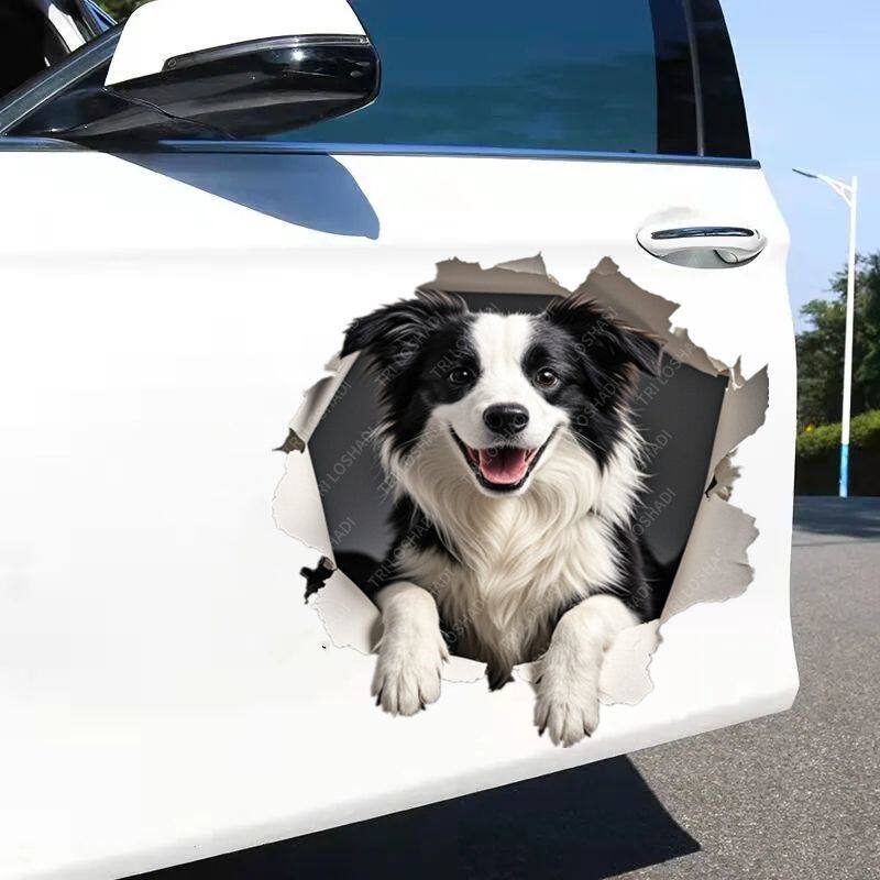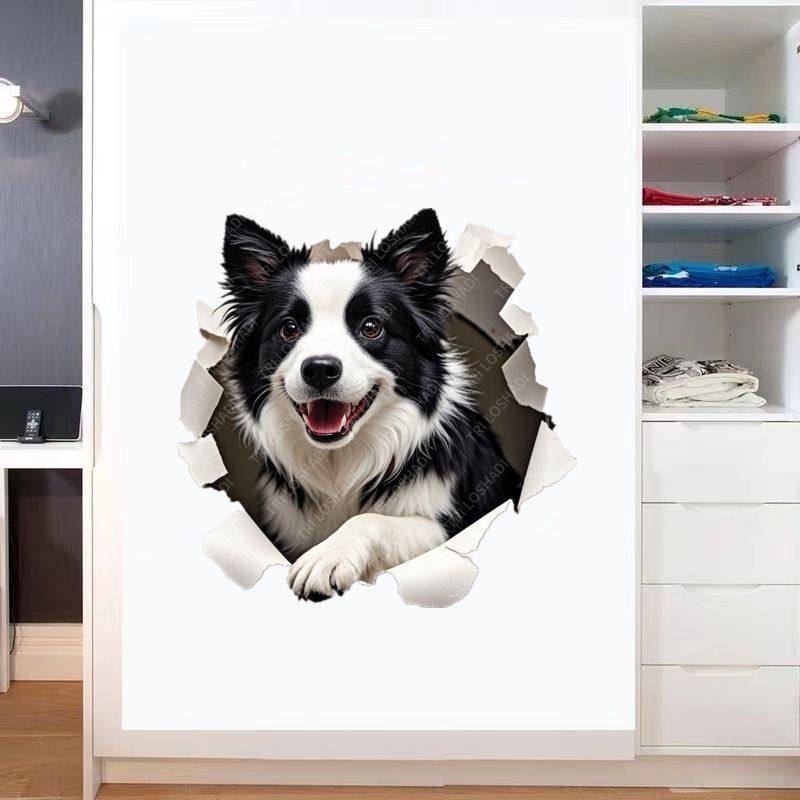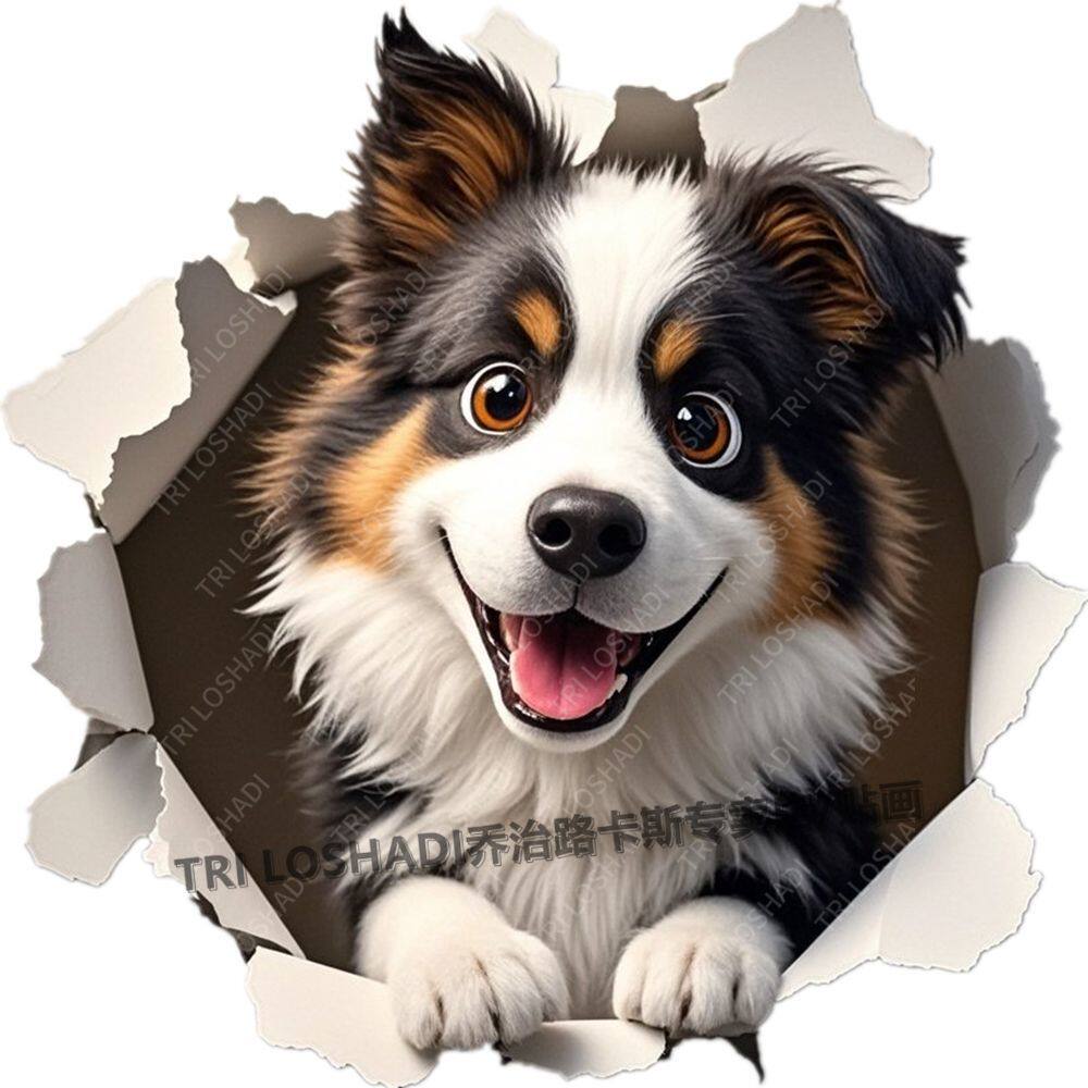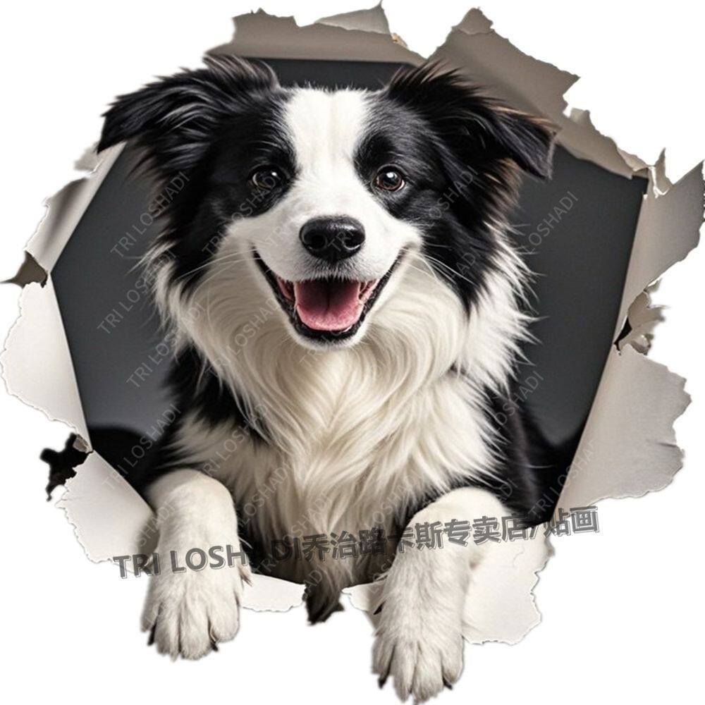 可爱边牧贴纸爆款3d视觉狗狗自粘墙贴遮丑补洞防水贴车小狗贴画