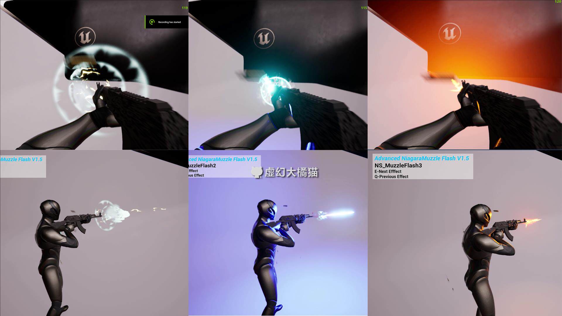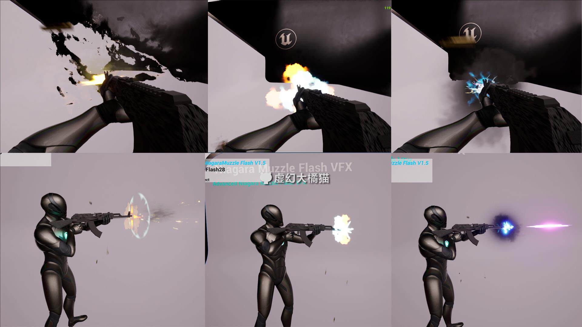 UE4虚幻5 Niagara Muzzle Flash Fx Pack奶瓜枪口闪光火花特效FPS
