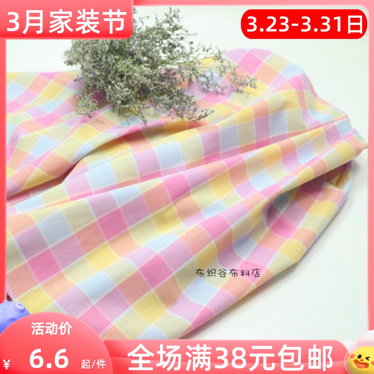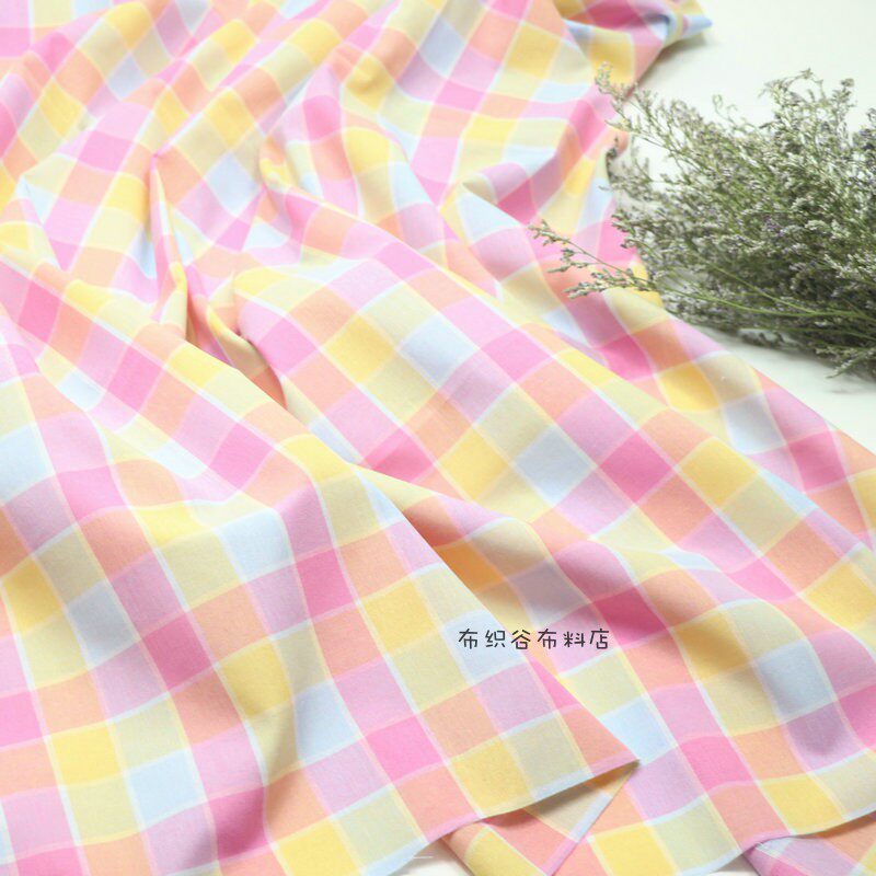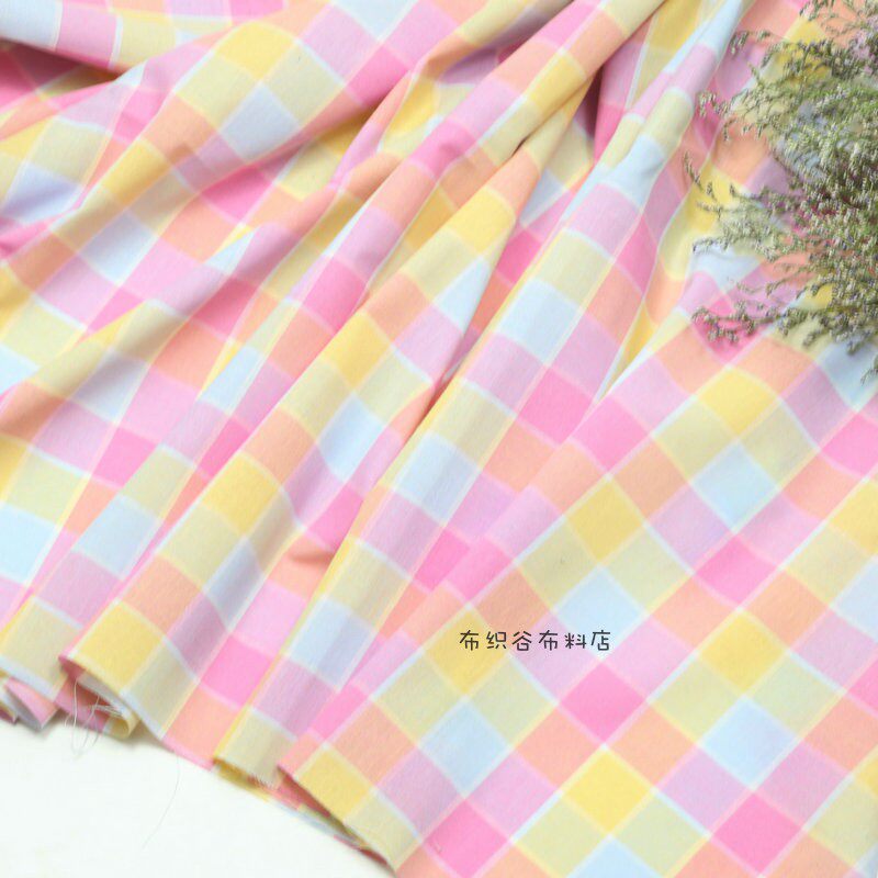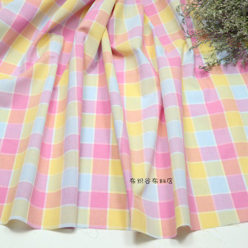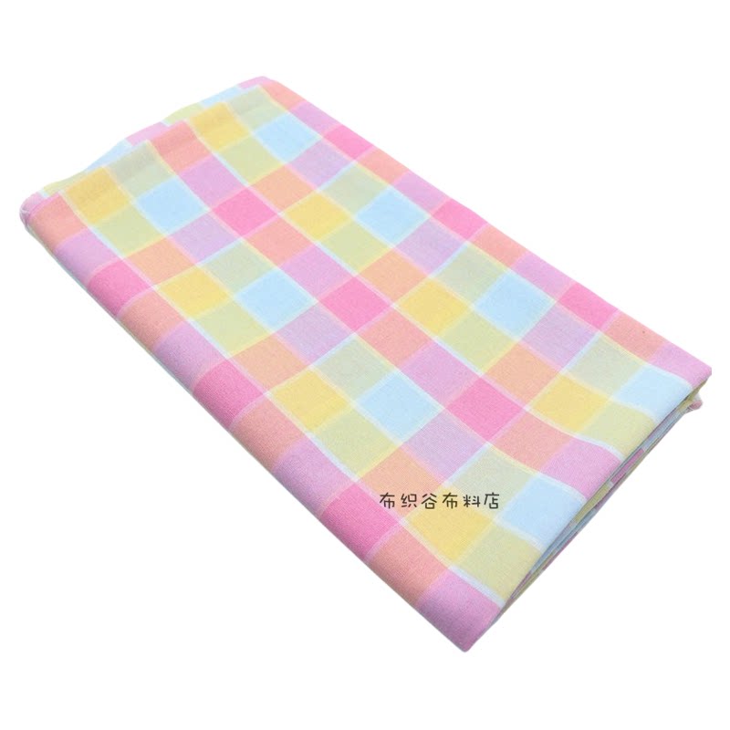 布织谷粉黄绿色撞色格子布料 糖果色织格子桌布服装手工diy面料