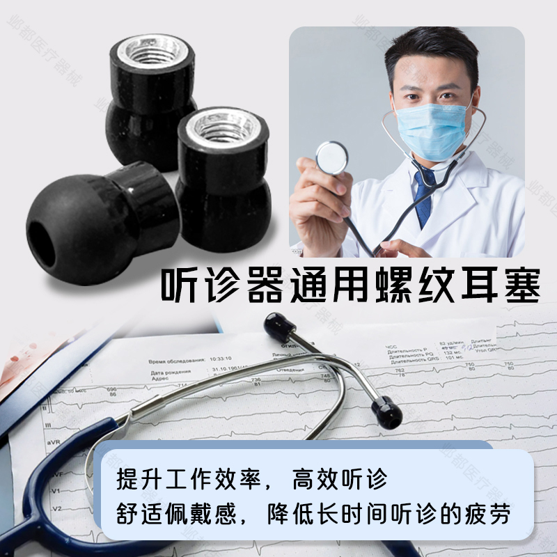 听诊器耳塞软耳塞 听诊器耳塞螺纹耳塞黑色6MM