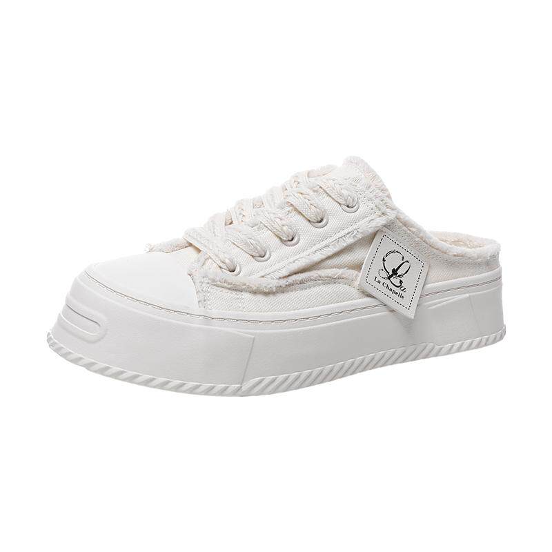 拉夏贝尔半拖帆布鞋女2025新款夏季秋季外穿包头一脚蹬懒人小白鞋
