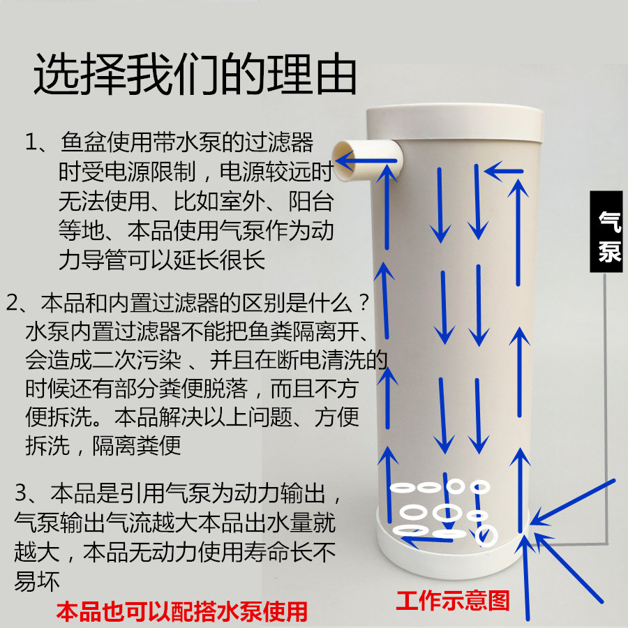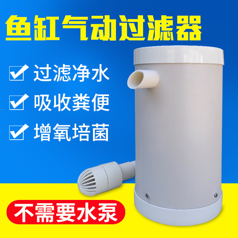 鱼盆过滤器鱼缸循环反气举滤筒自制三合一内置气动吸便净水水妖精