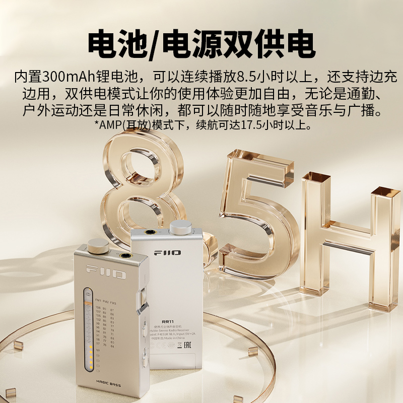 FiiO/飞傲 RR11便携式迷你立体声复古收音机随身听手机耳放小尾巴
