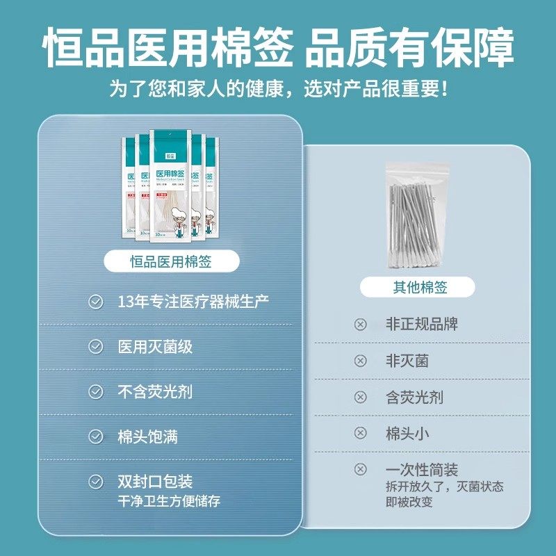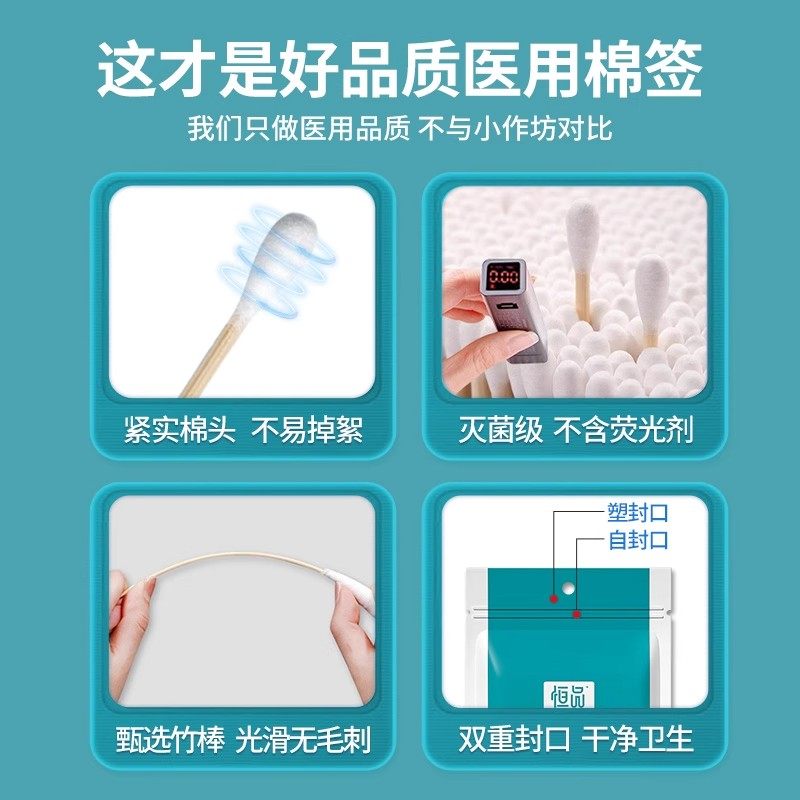 恒品医用棉签无菌一次性妇科检查伤口消毒医疗大头脱脂棉球棉花棒