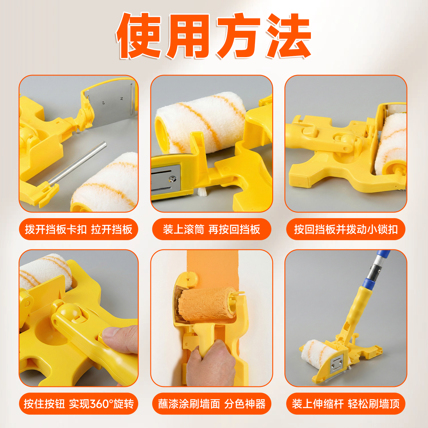 分色修边滚筒油漆分色神器刷墙工具创新工艺隔片设计黄色专业滚刷
